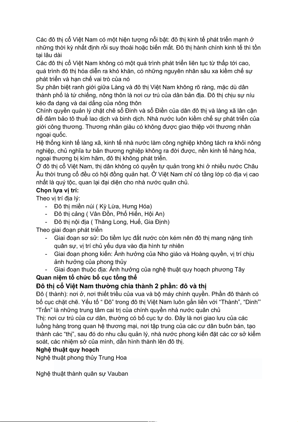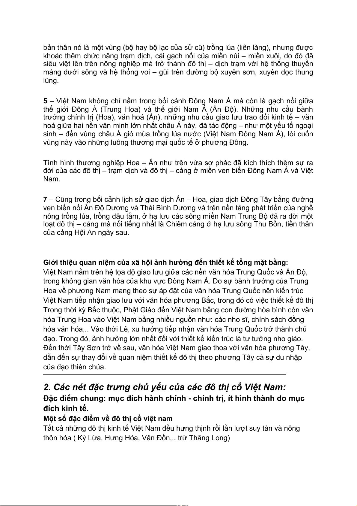 2. Các nét đặc trưng chủ yếu của các đô thị cổ Việt Nam: