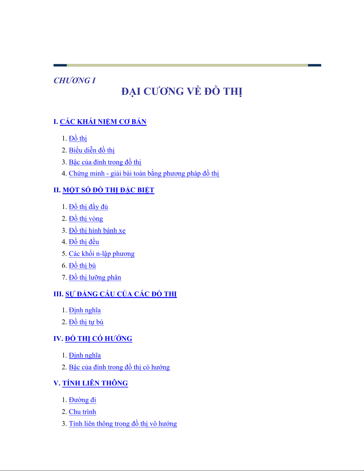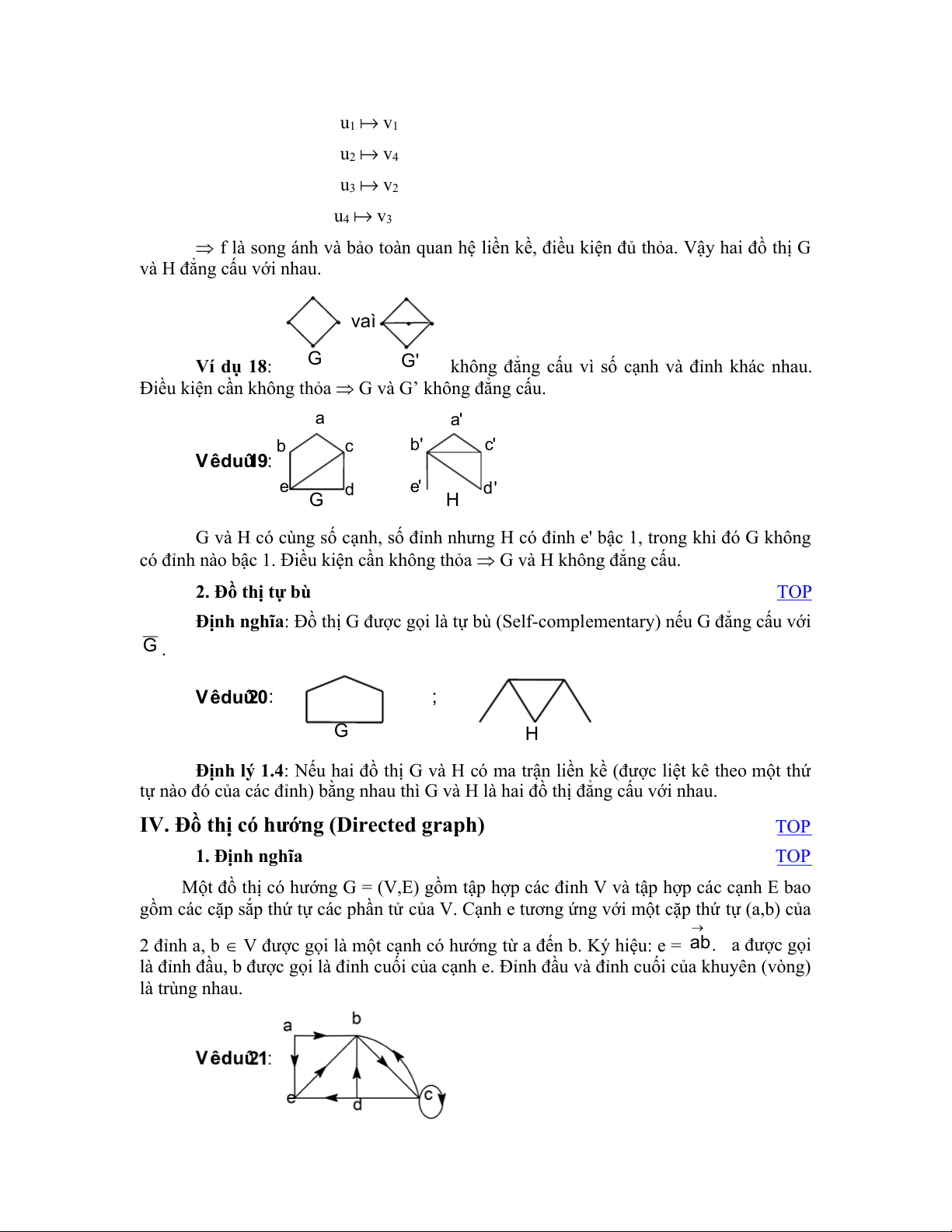 III. SỰ ĐẲNG CẤU CỦA CÁC ĐỒ THỊ 1. Định nghĩa 2. Đồ thị tự bù IV. ĐỒ THỊ CÓ HƯỚNG 1. Định nghĩa