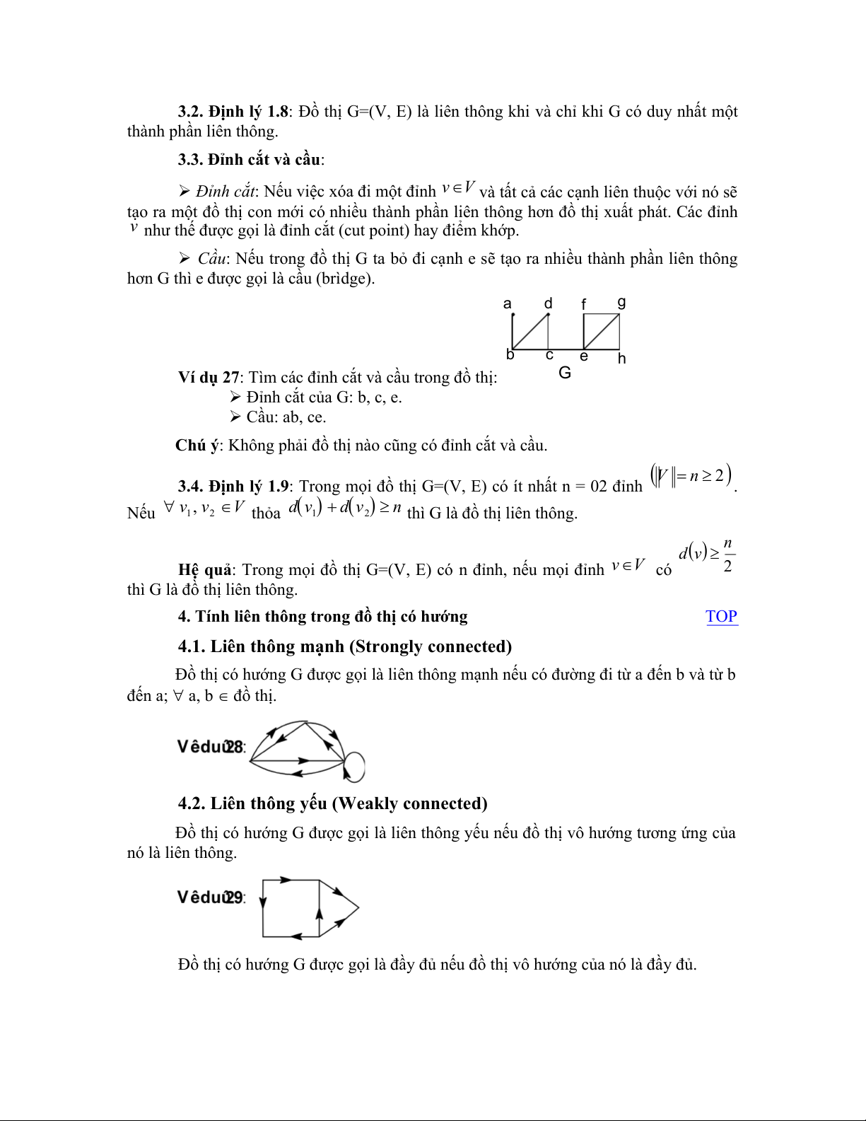 3.2. Định lý 1.8: Đồ thị G=(V, E) là liên thông khi và chỉ khi G có duy nhất một thành phần liên thông. 3.3. Đỉnh cắt và cầu: