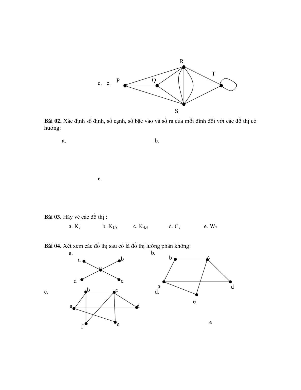 Bài 04. Xét xem các đồ thị sau có là đồ thị lưỡng phân không: a. b. a b b c c d e a d c. b c d. e a d e f e
