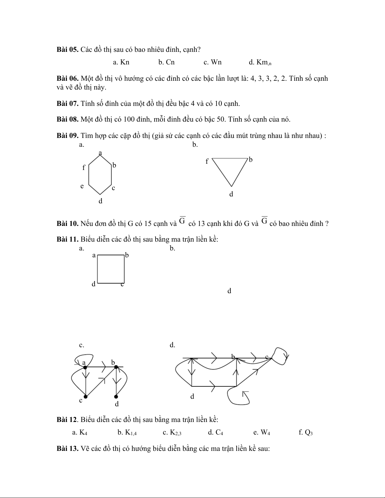 Bài 05. Các đồ thị sau có bao nhiêu đỉnh, cạnh? a. Kn b. Cn c. Wn d. Km,n
