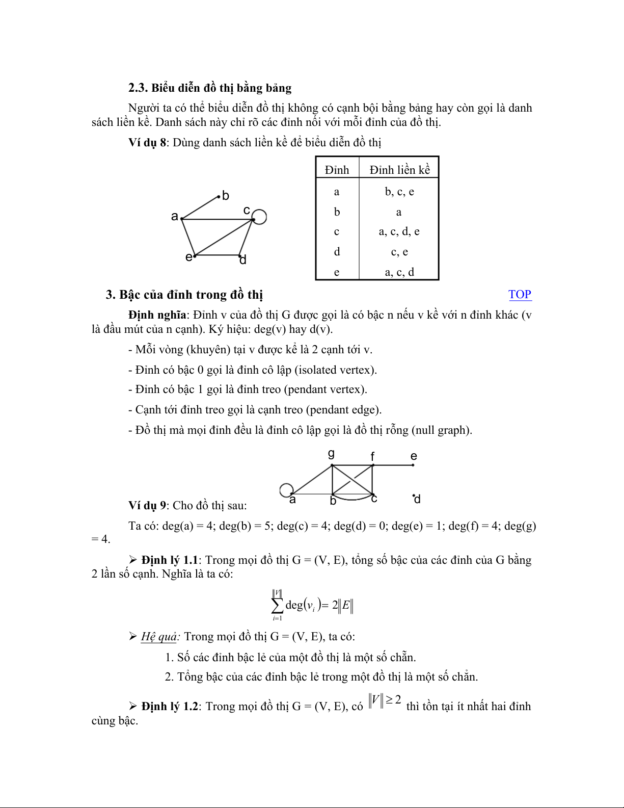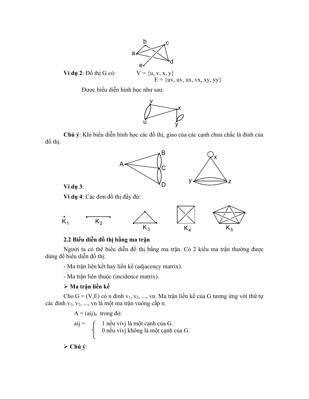 Trong giáo trình này, chúng ta chỉ khảo sát các đồ thị hữu hạn. 2. Biểu diễn đồ thị TOP