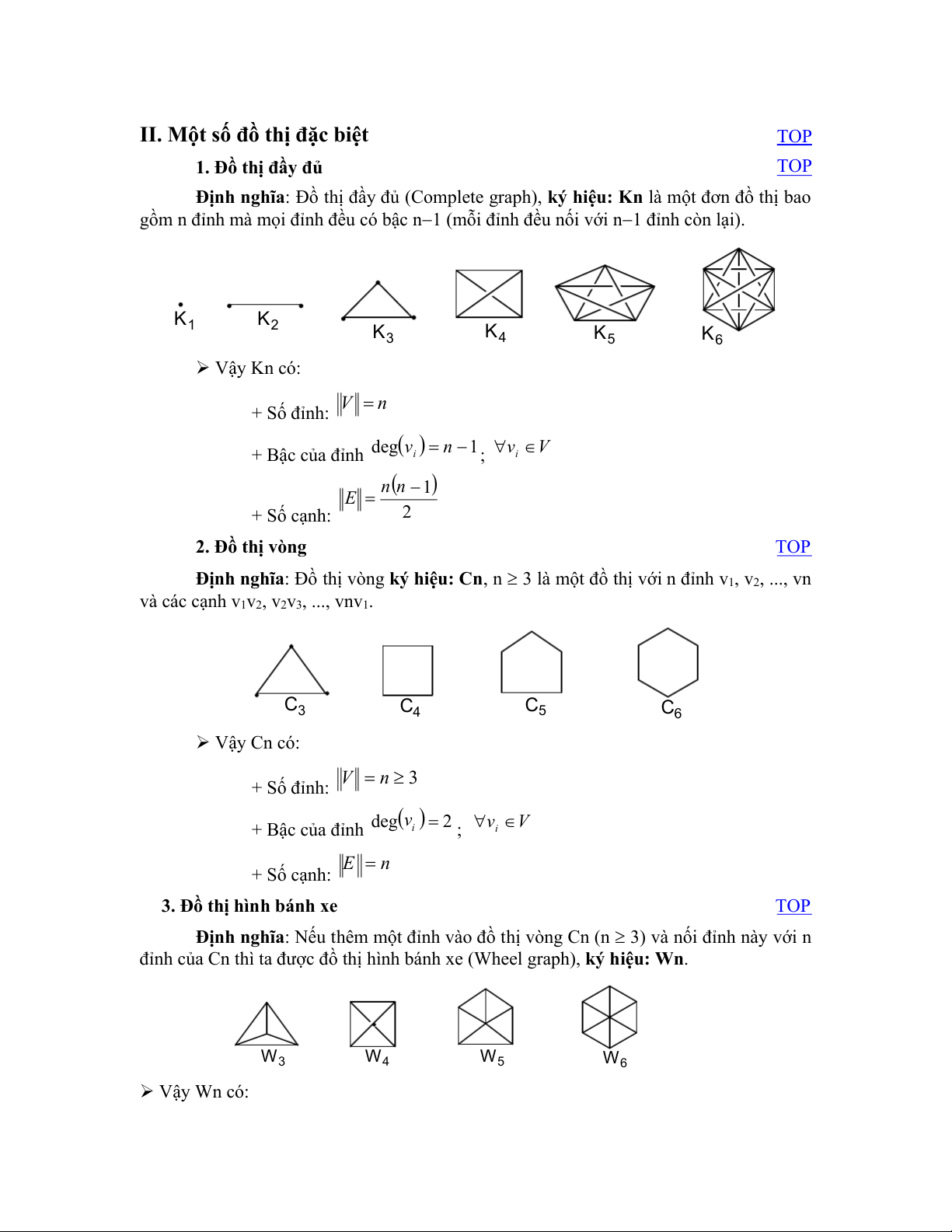 II. MỘT SỐ ĐỒ THỊ ĐẶC BIỆT 1. Đồ thị đầy đủ 2. Đồ thị vòng 3. Đồ thị hình bánh xe 4. Đồ thị đều