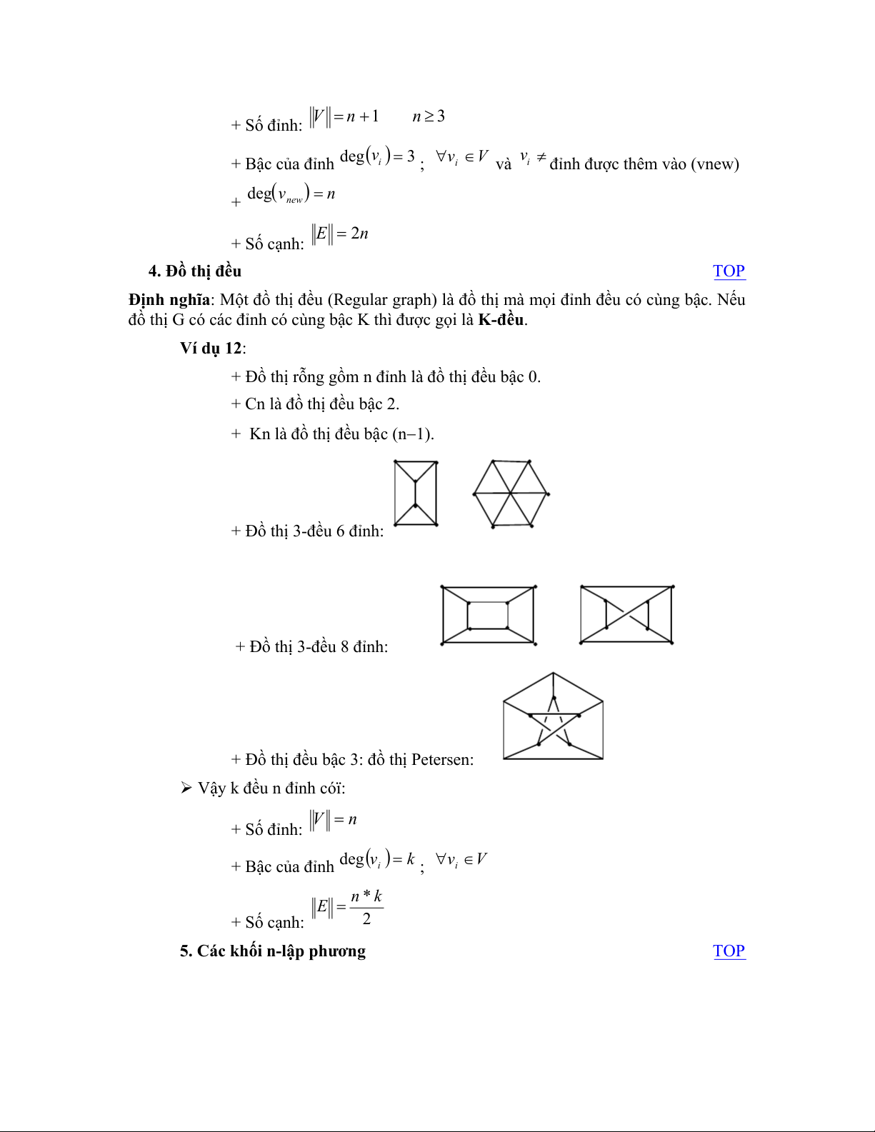 5. Các khối n-lập phương 6. Đồ thị bù 7. Đồ thị lưỡng phân