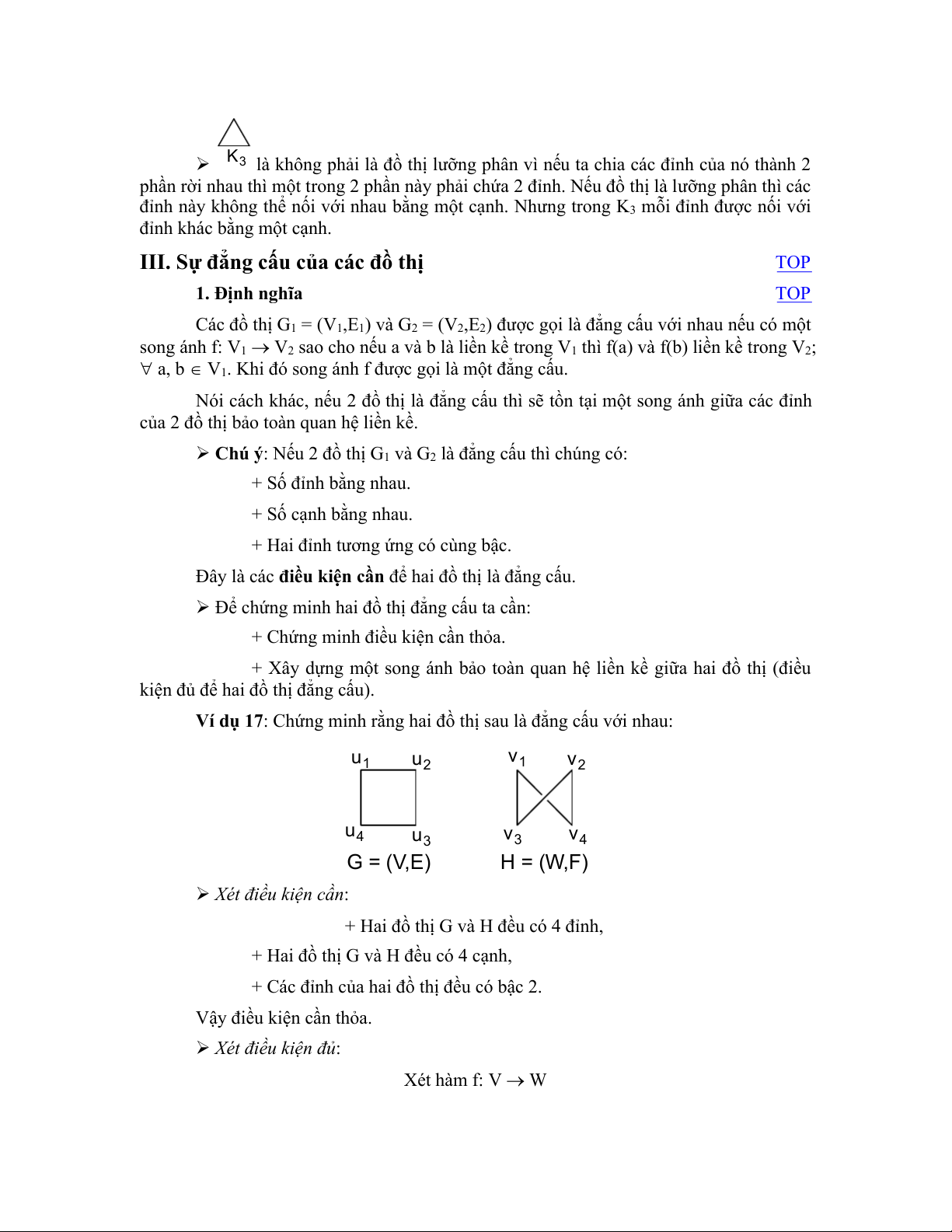 Chú ý: Hai đồ thị là đồng phôi thì chưa chắc đẳng cấu với nhau.