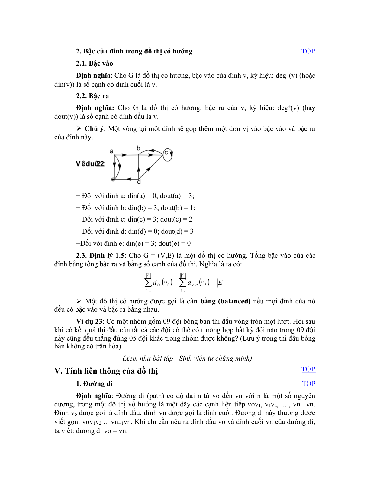 2. Bậc của đỉnh trong đồ thị có hướng V. TÍNH LIÊN THÔNG 1. Đường đi 2. Chu trình