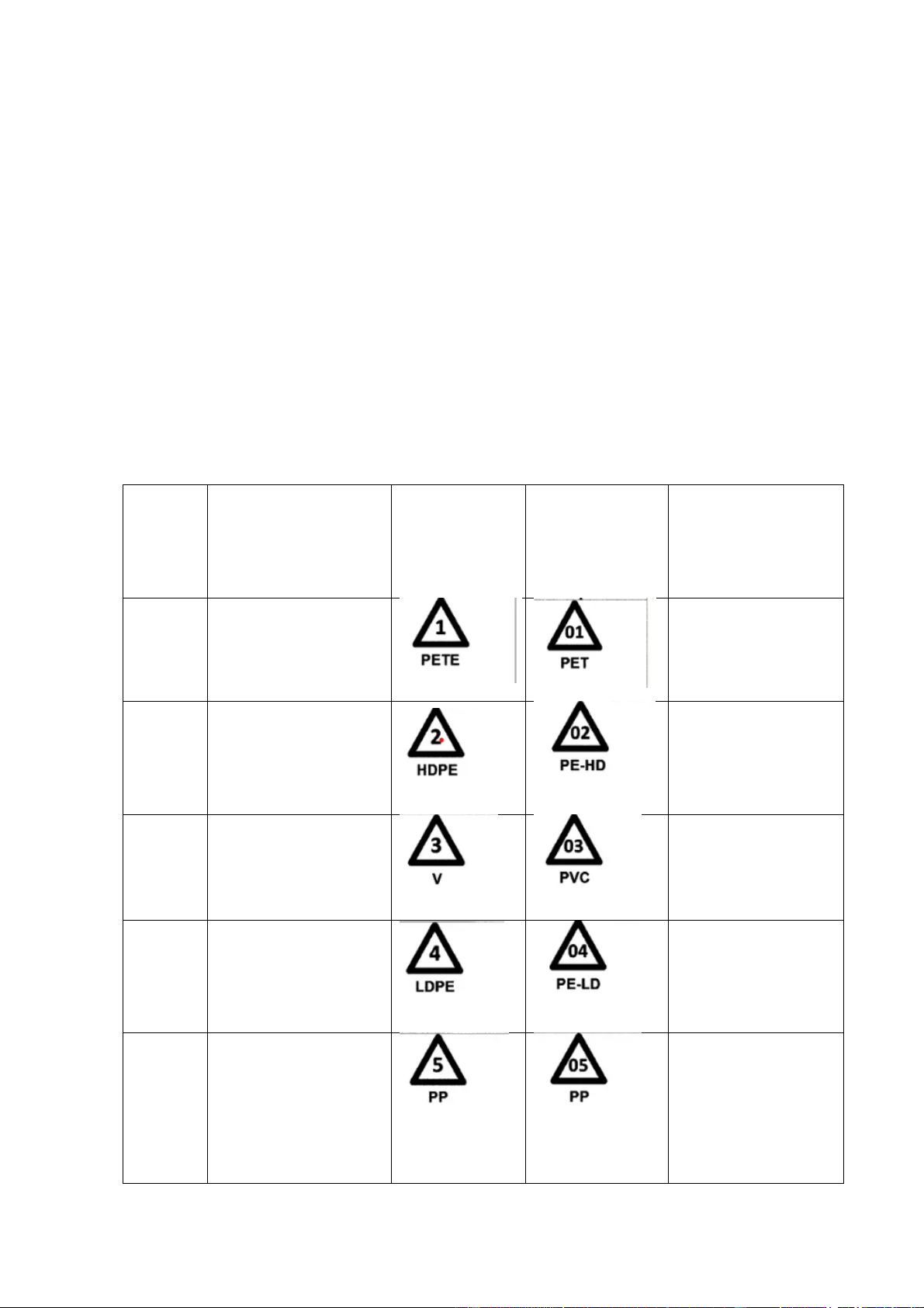 Một nhóm chất ô nhiễm hữu 15 PCB Polychlorinated Biphenyls cơ khó phân hủy 16 PE Polyethylene Nhựa Polyethylene PET / 17 PETE Polyethylene Terephthalate Nhựa PET Per- and Polyfluoroalkyl Các chất per- và 18 PFAS Substances polyfluoroalkyl