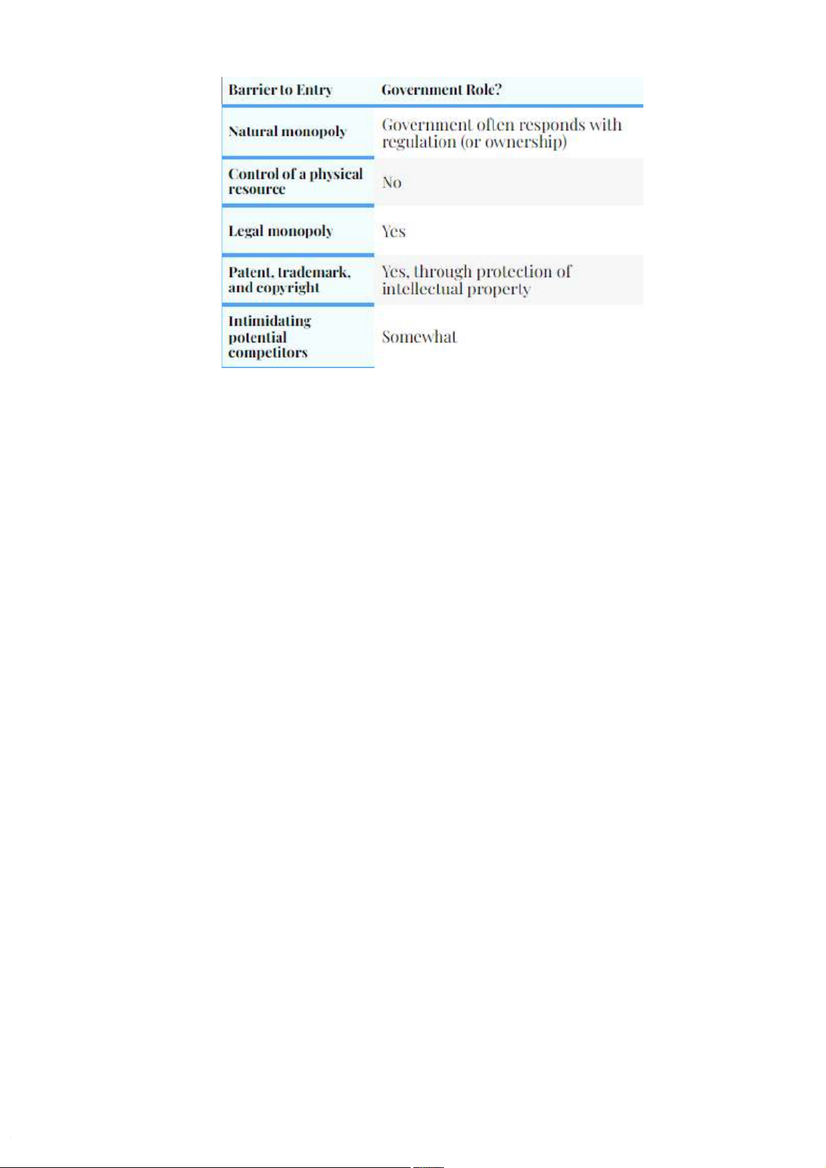 - Government restrictions: The government grants a corporation exclusive