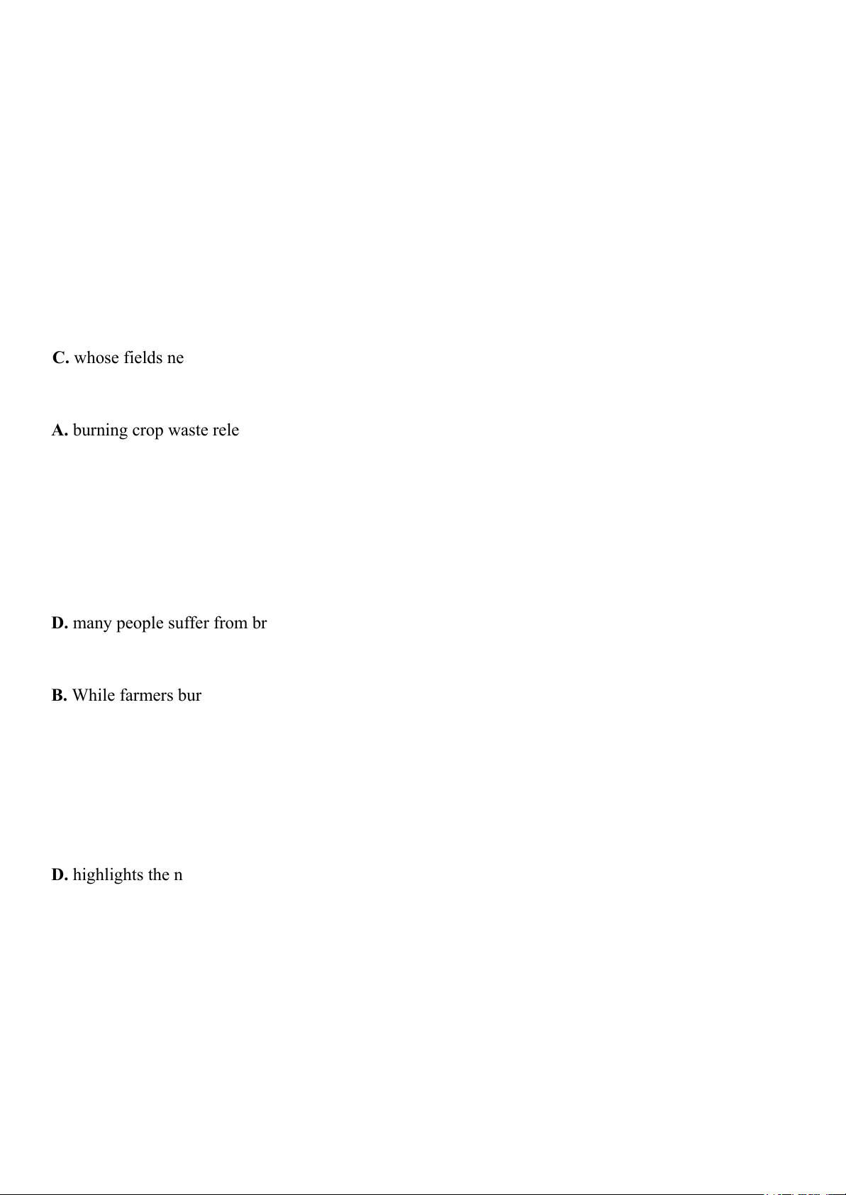 Read the following passage about the practice of burning crop waste and mark the letter A, B, C, or D