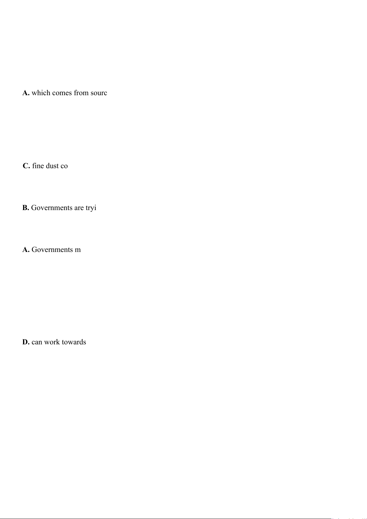 ollowing passage about the problem of fine dust in big cities and mark the letter A, B, C, or
