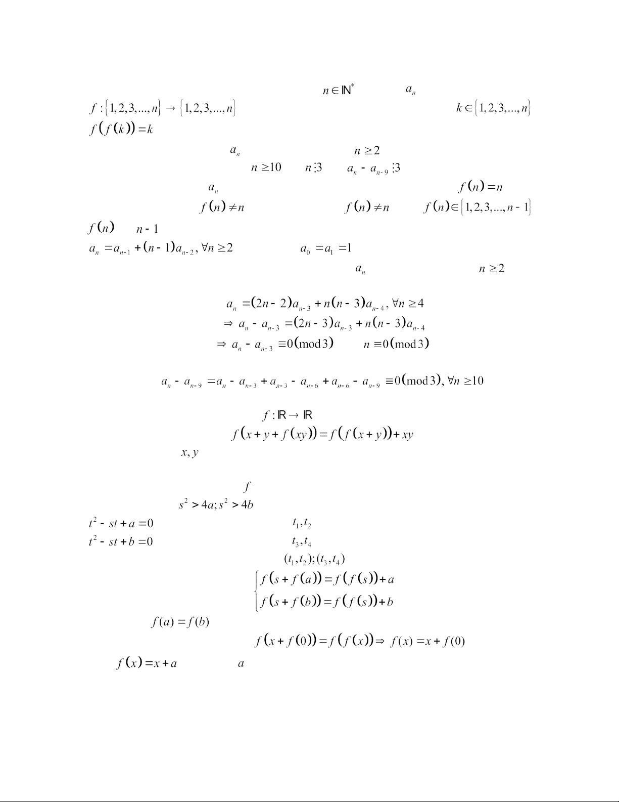 Bài 14. Tìm tất cả các hàm thỏa mãn điều kiện:, với mọi . (17) Lời giải. Với sao cho suy ra . Do đó là một song ánh. Thay