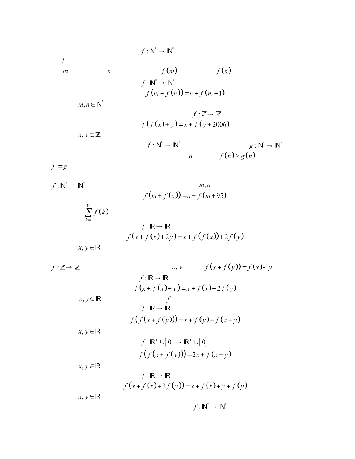 Bài 1 (IMO 1988). Tìm tất cả các hàm thỏa mãn đẳng thức: , với mọi .