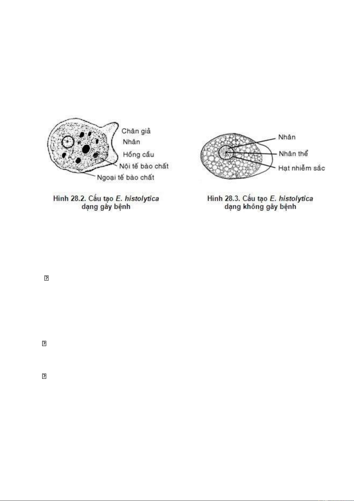 - Trong nội nguyên sinh chất không có hồng cầu (thể không ăn hồng cầu).