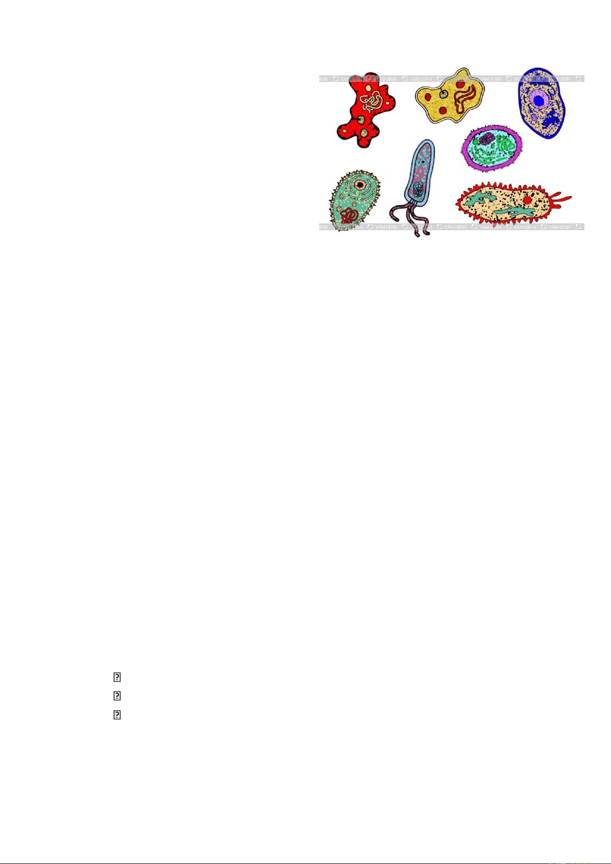 hô hấp, bài tiết… 2.Đặc điểm chung của đơn bào.