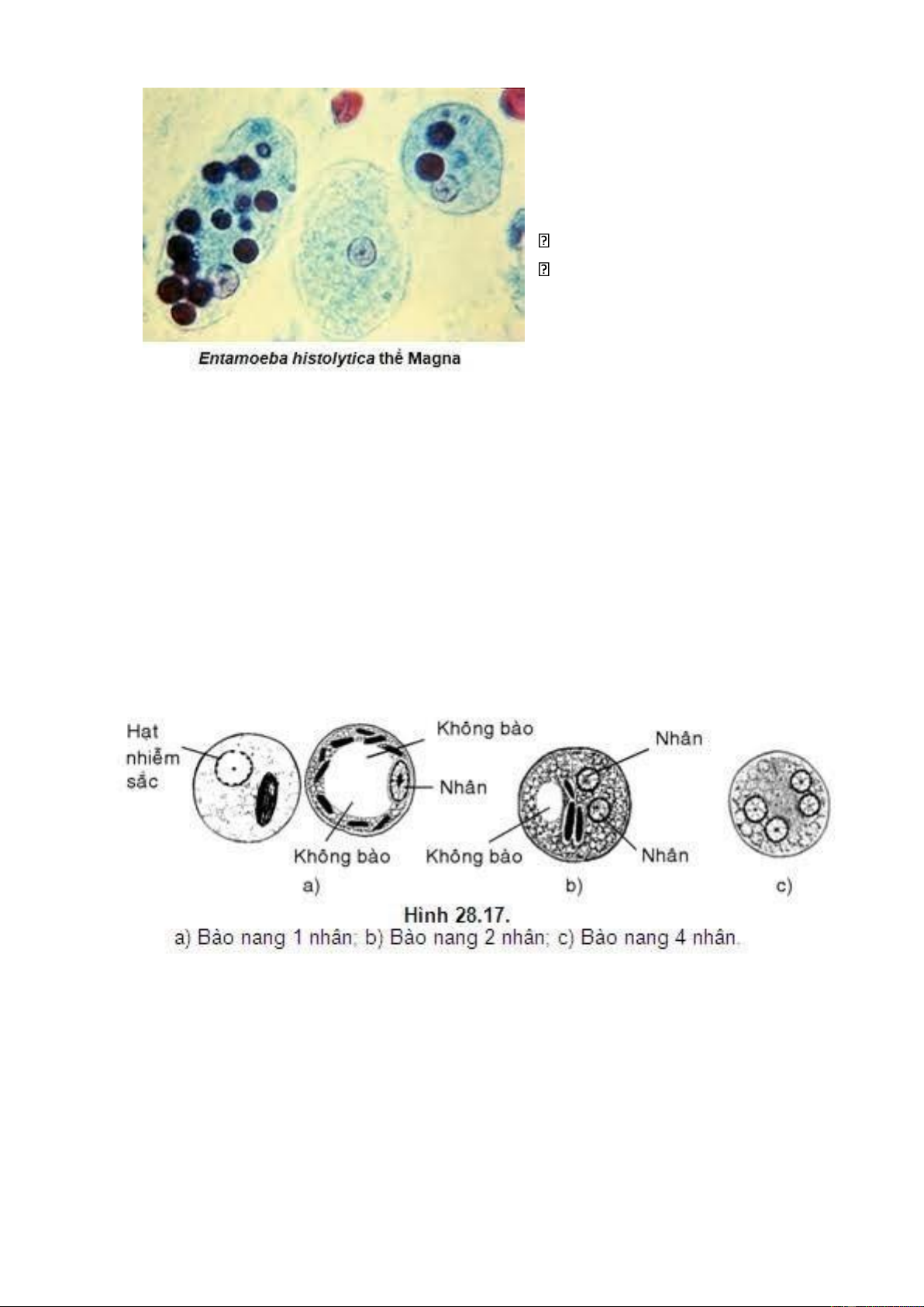 nhân => 8 Amip con ( thể Minuta). Thể này có thể sống hoại sinh ở ruột mà