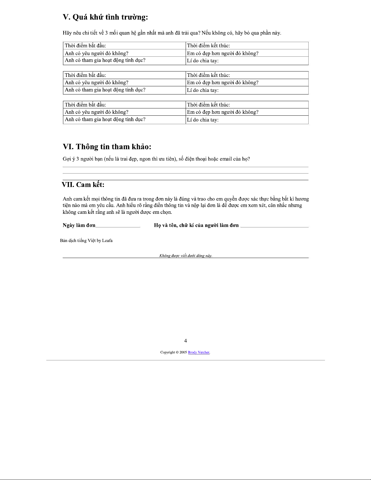 Đơn Đăng Ký Bạn Trai Chính Thức - Bản Tiếng Việt