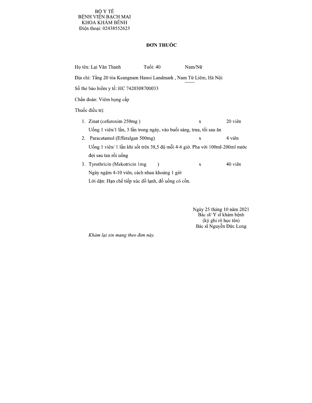 Đơn Thuốc Thực Hành cho Bệnh Viêm Họng Cấp - Bệnh Viện Bạch Mai