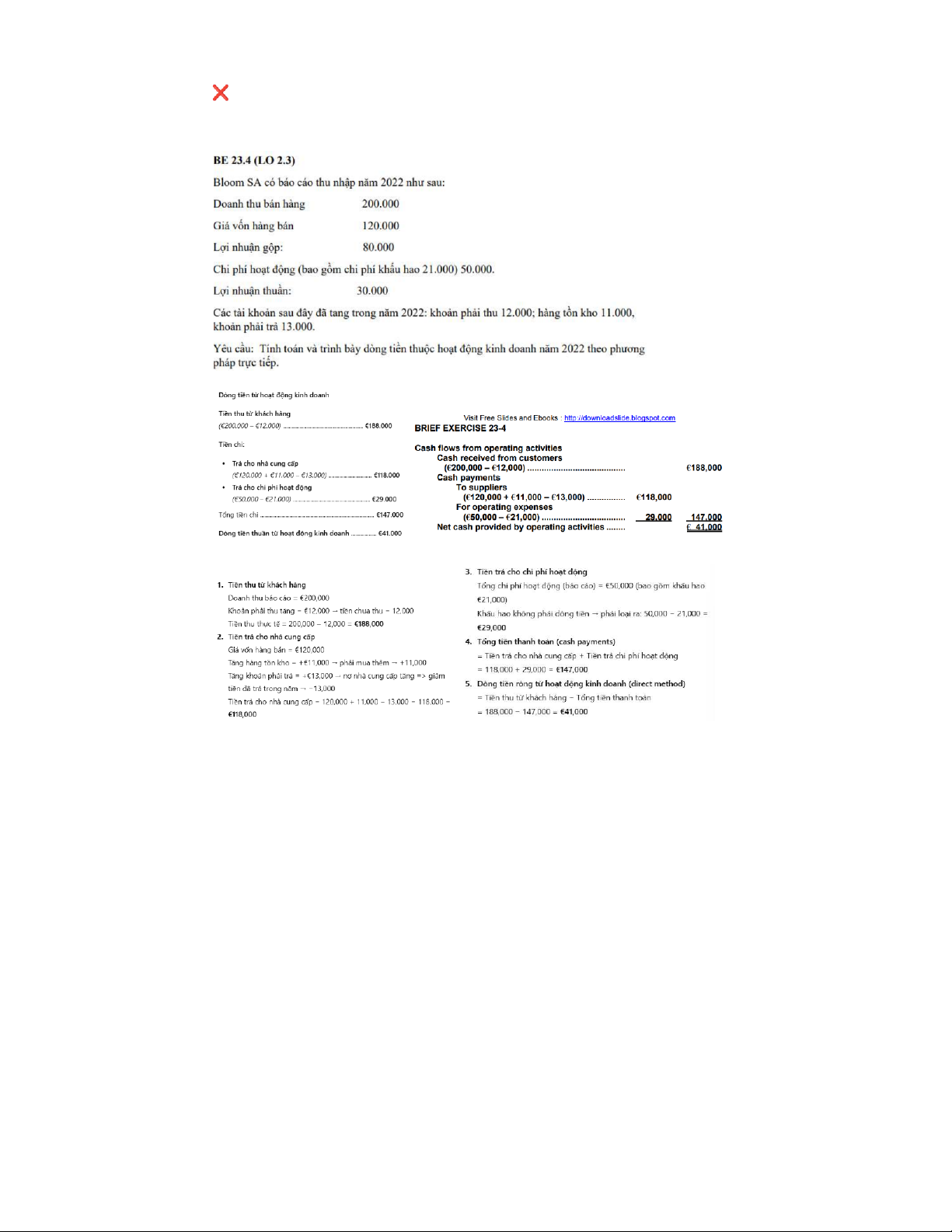BE 23.5 (LO 2.3) Sử dụng thông tin BE 23.4. Lập dòng tiền từ hoạt động kinh doanh của BCLCTT