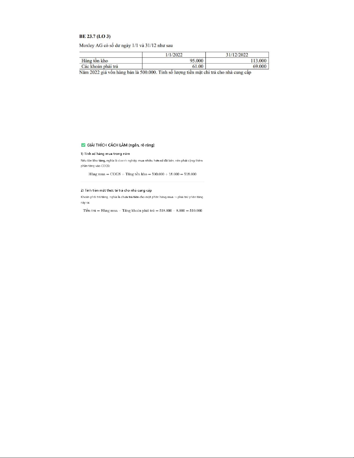 Tiền mặt chi trả cho nhà cung cấp ............................ €510.000 BE 23.8 (LO 2.3)