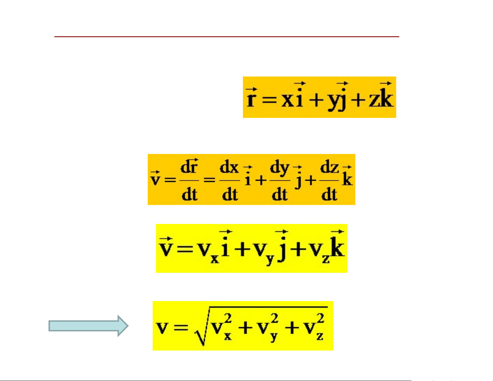 1.2.2 Thành phần, độ lớn, phương chiều của vận tốc: dx v x dt Do đó dy v y dt dz v z dt