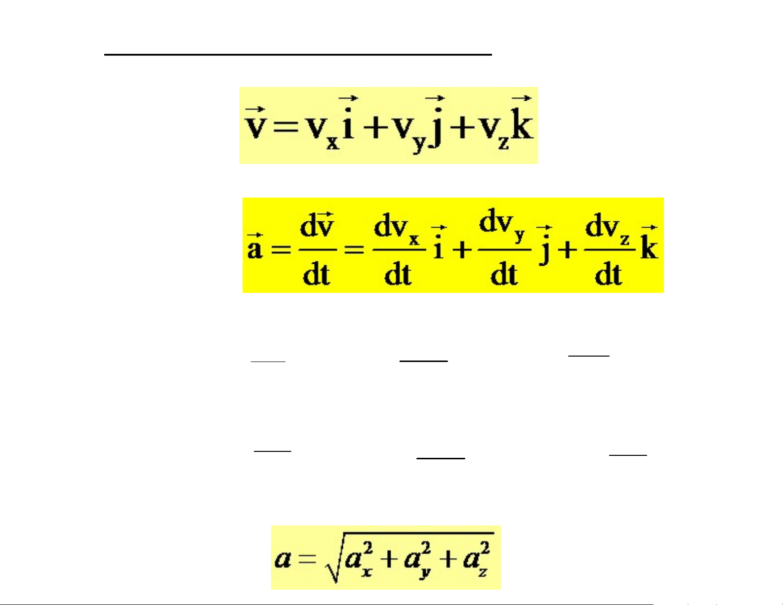 1.3.2. Thành phần của gia tốc Với vận tốc: Ta có gia tốc: dv dv dv Gọi a x y z x = ; ay = ; a = dt dt z dt 2 d x 2 2 Hay a d y = ; = ; a d z x a 2 = dt y z 2 dt 2 dt