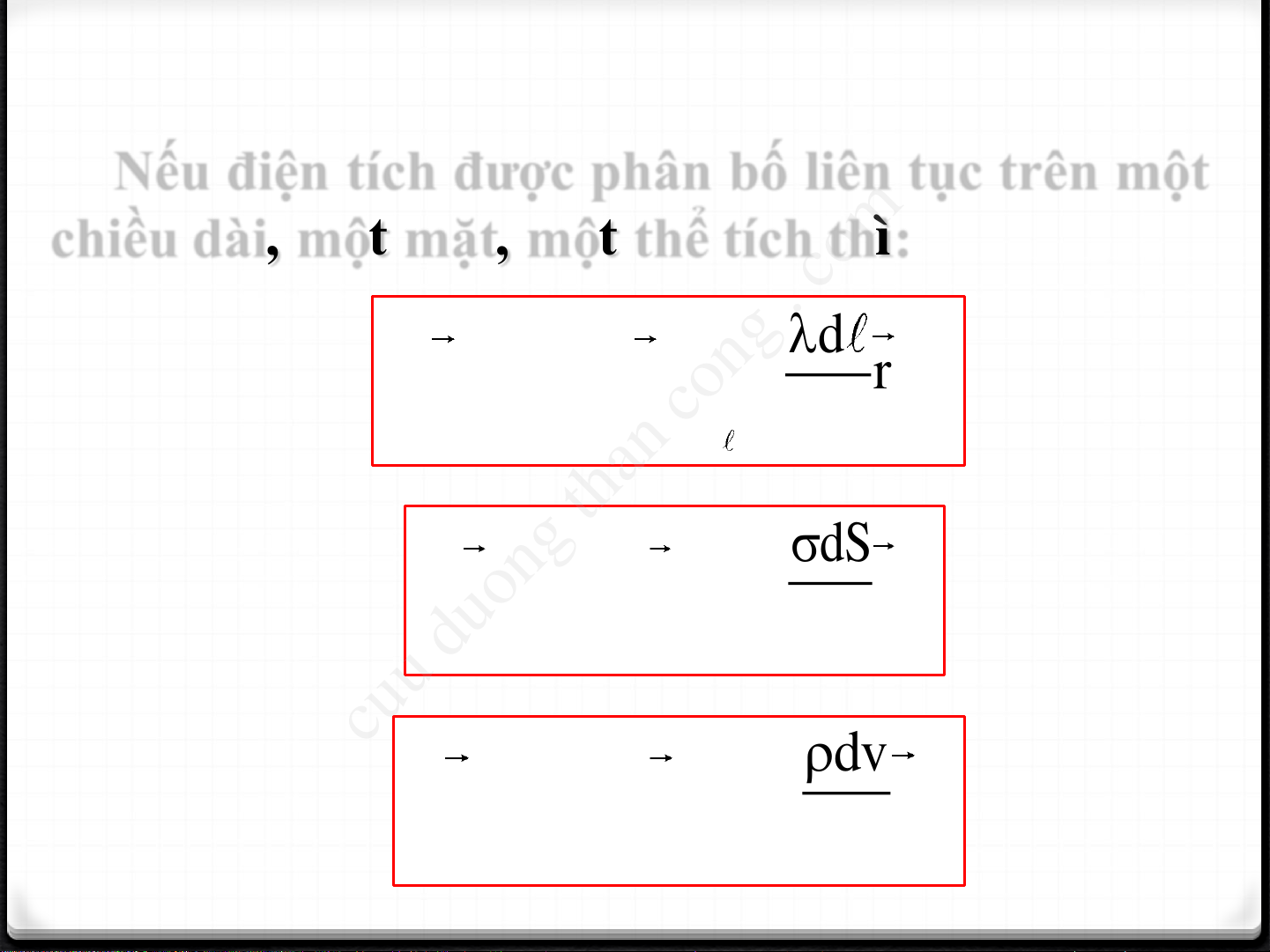 chiều dài, một mặt, một thể tích thì: d E dE k r 3r PBDT dS E dE k r 3r PBDT S cuu duong than cong . com dv E dE k r 3r PBDT v CuuDuongThanCong.com
