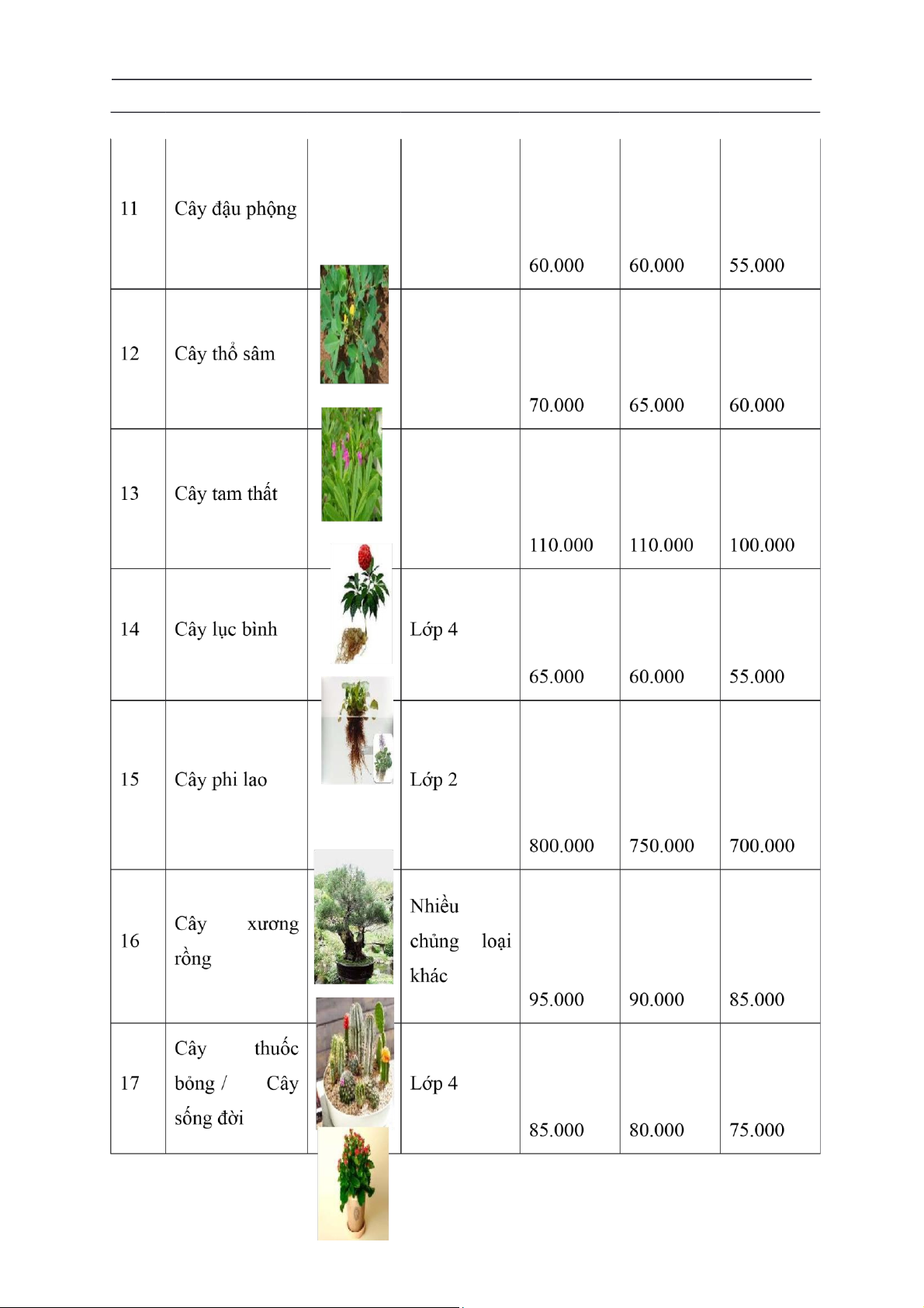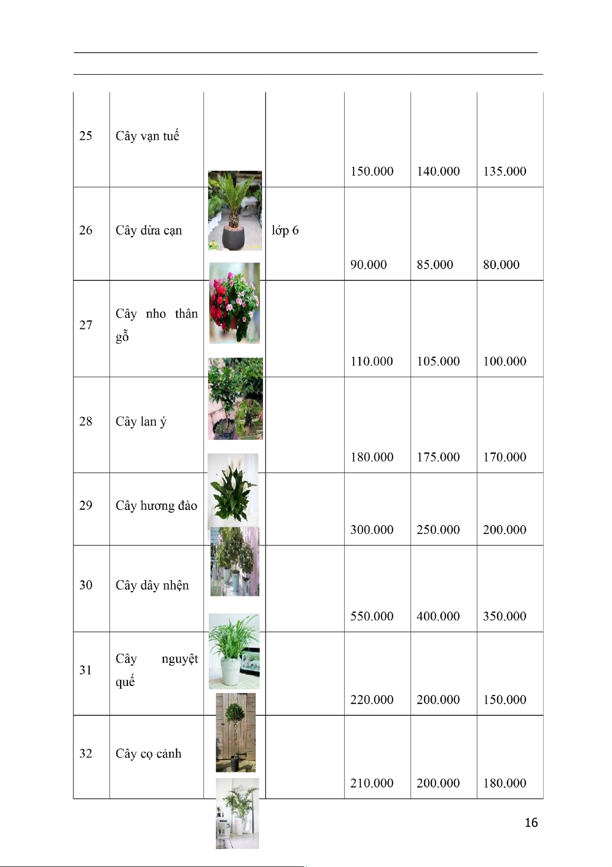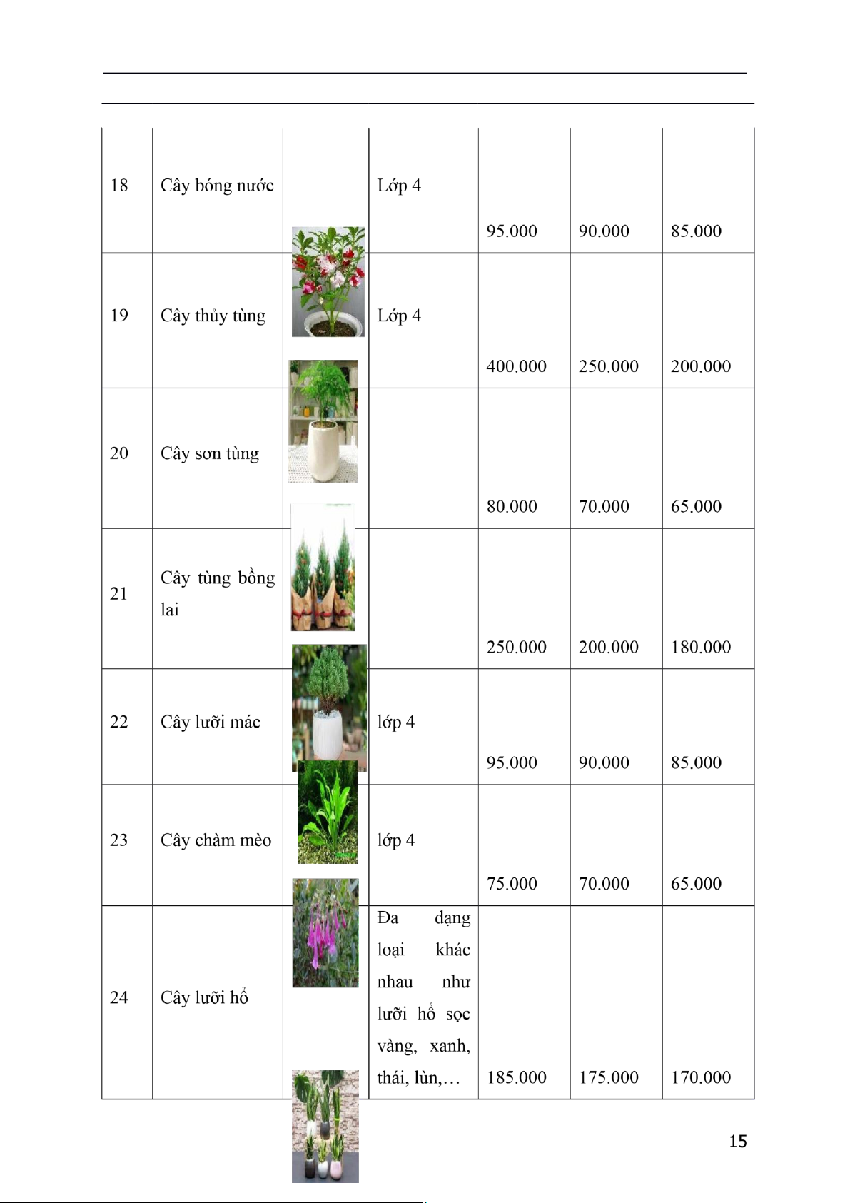 TÊN SẢN HÌNH SẢN Dưới 20 Trên 20 T PHẨM ẢNH GHI CHÚ PHẨM cây cây 1 Cây dương xỉ lớp 4 60.000 55.000 50000 Cây thiết mộc 2 lan 500.000 250.000 200.000 3 Cây trúc đào 250.000 200.000 180.000 12 lOMoAR cPSD| 47206521 Trường Đ i h c Hoa Senạ ọ 13 lOMoAR cPSD| 47206521 Trường Đ i h c Hoa Senạ ọ 14 lOMoAR cPSD| 47206521 Trường Đ i h c Hoa Senạ ọ 15 lOMoAR cPSD| 47206521 Trường Đ i h c Hoa Senạ ọ 16 lOMoAR cPSD| 47206521 Trường Đ i h c Hoa Senạ ọ 17 lOMoAR cPSD| 47206521 Trường Đ i h c Hoa Senạ ọ 18