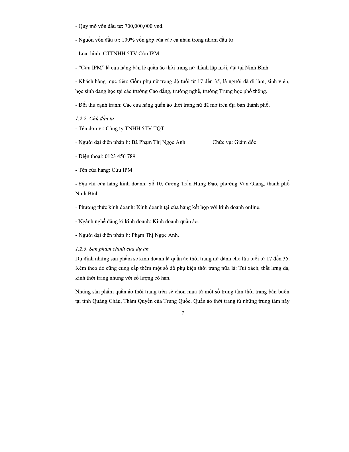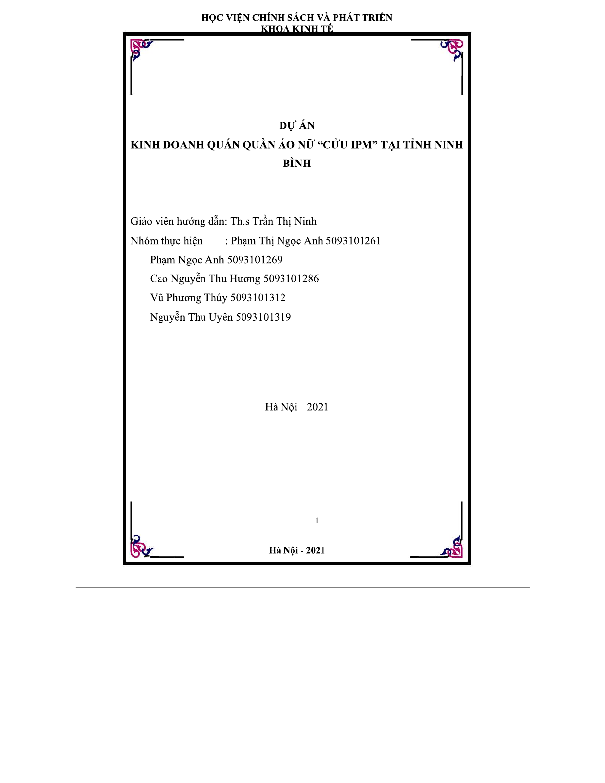 Dự Án Kinh Doanh Quần Áo Nữ “Cửu IPM” - Nhóm 12 - 2021