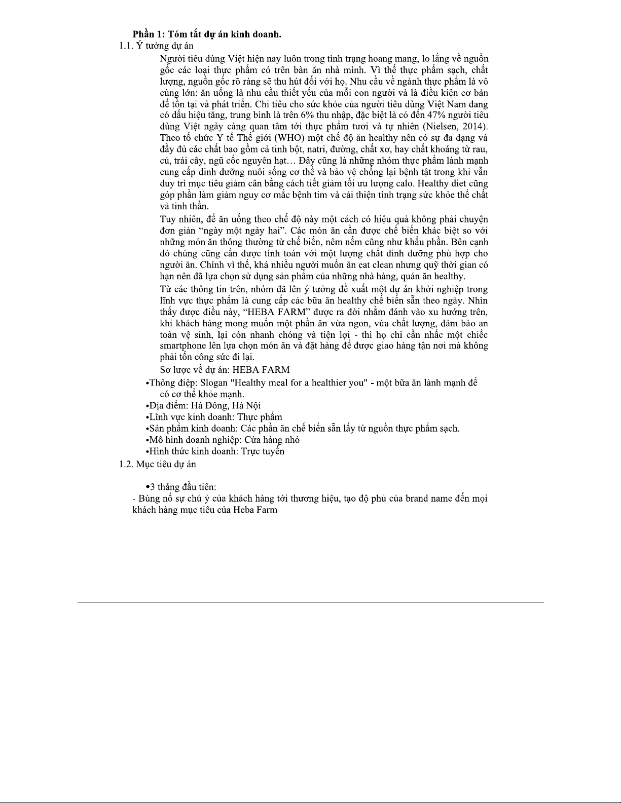 Dự án Kinh Doanh Thực Phẩm Làm Sẵn Healthy - HEBA FARM