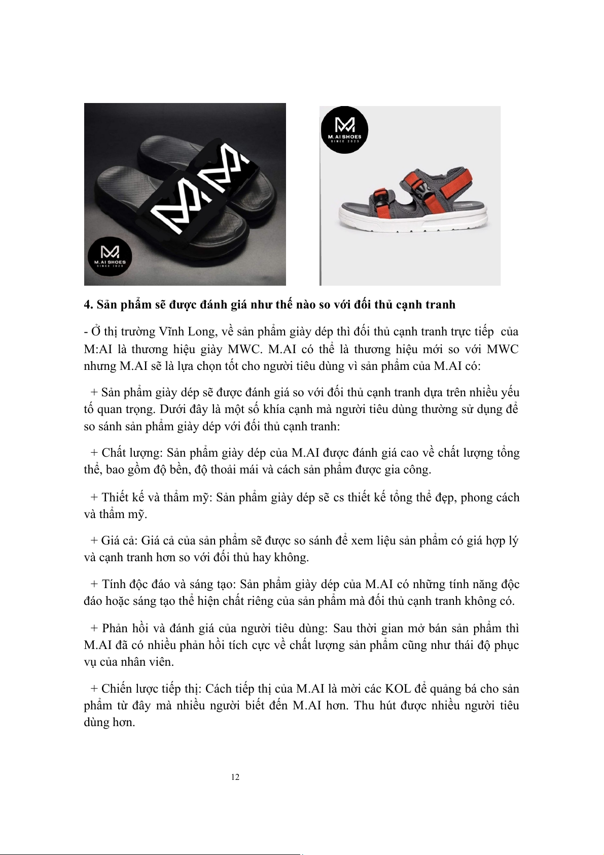 + Tính độc đáo và sáng tạo: Sản phẩm giày dép của M.AI có những tính năng độc