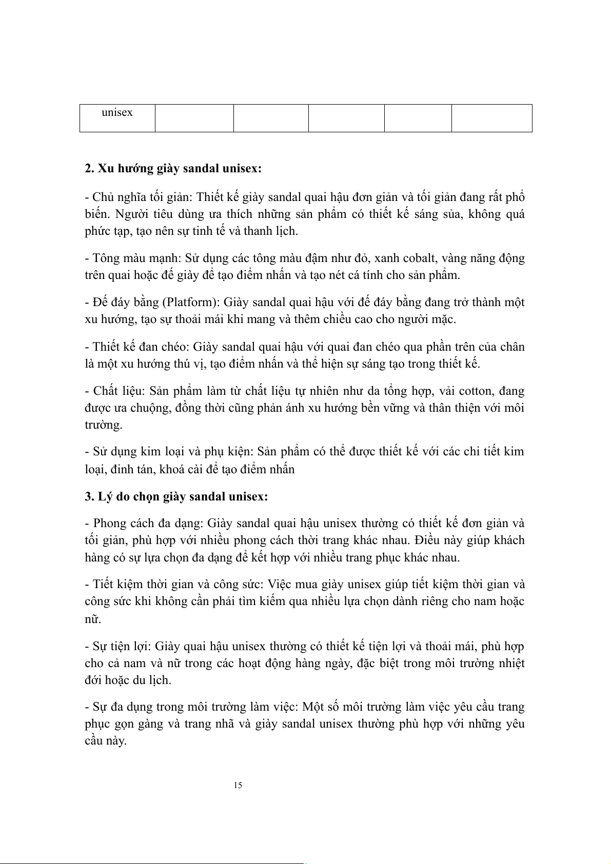 3. Lý do chọn giày sandal unisex:................................................................................16