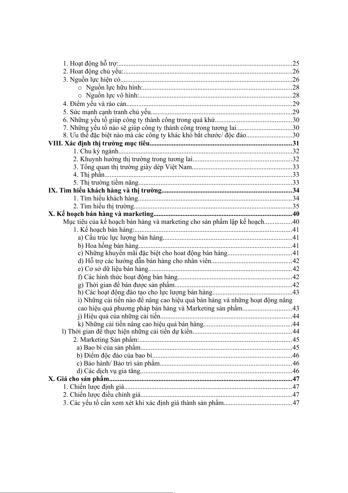 X. Kế hoạch bán hàng và marketing.................................................................................40