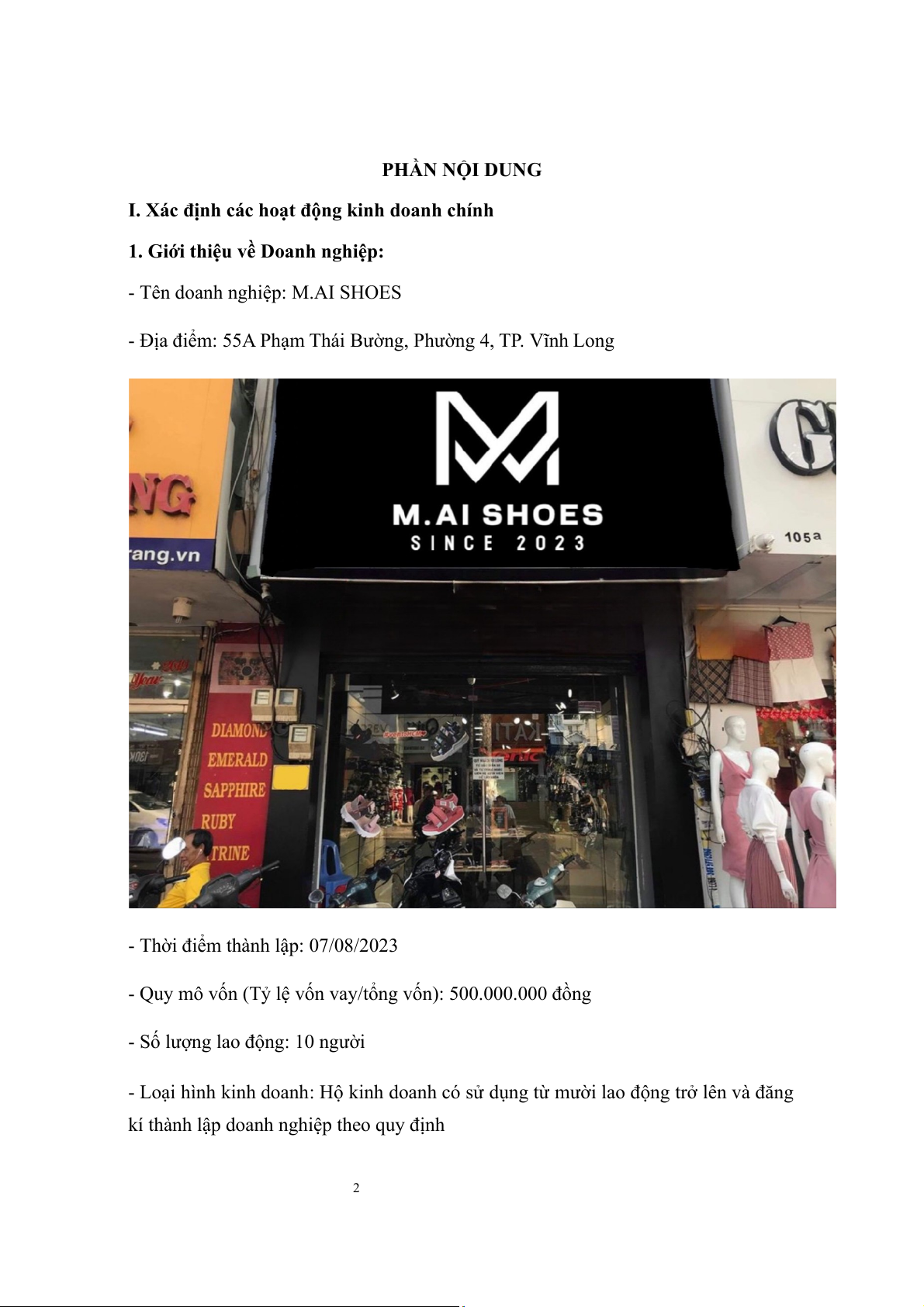I. Xác định các hoạt động kinh doanh chính......................................................................2
