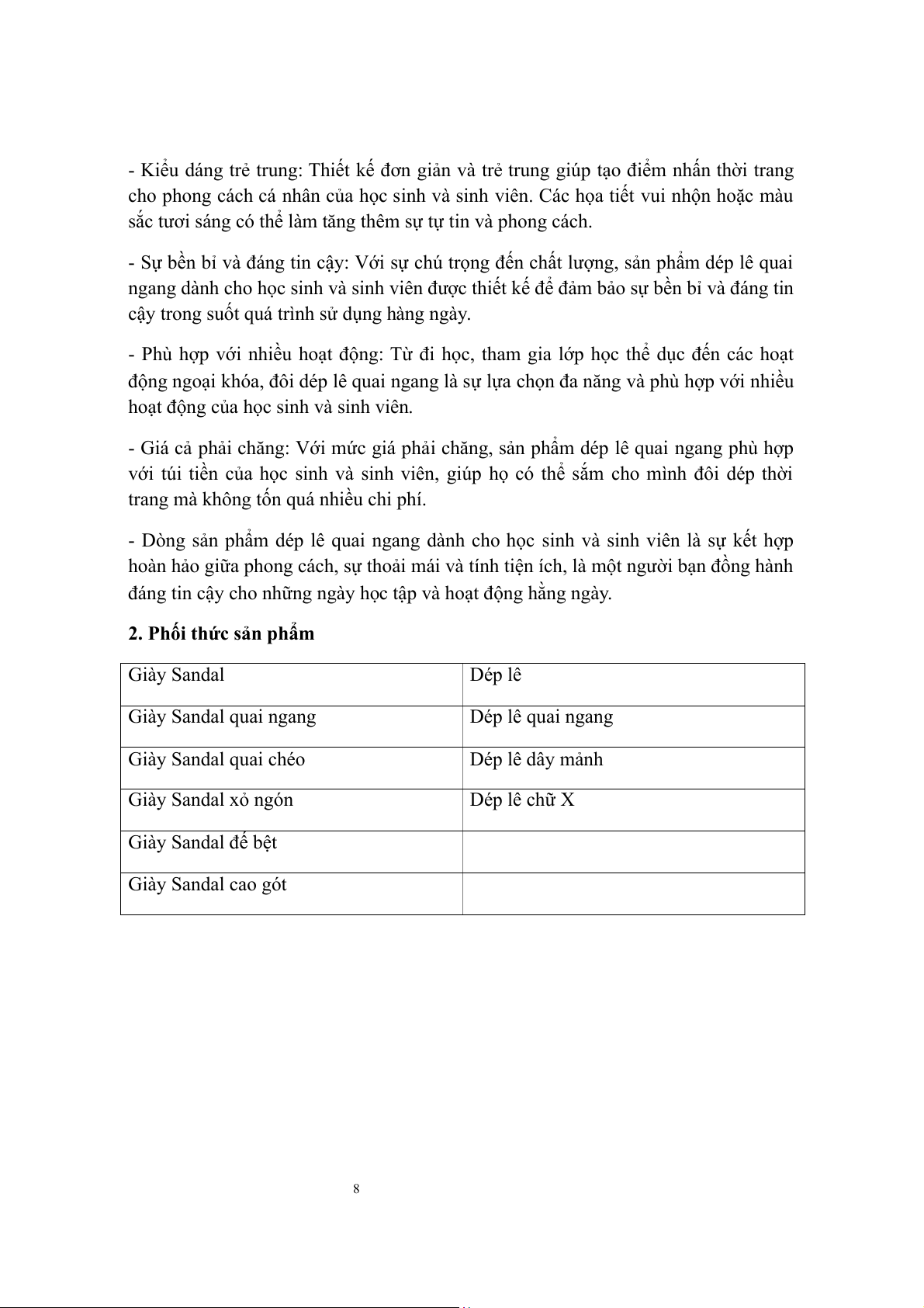 2. Phối thức sản phẩm Giày Sandal Dép lê Giày Sandal quai ngang Dép lê quai ngang Giày Sandal quai chéo Dép lê dây mảnh Giày Sandal xỏ ngón Dép lê chữ X Giày Sandal đế bệt Giày Sandal cao gót 8