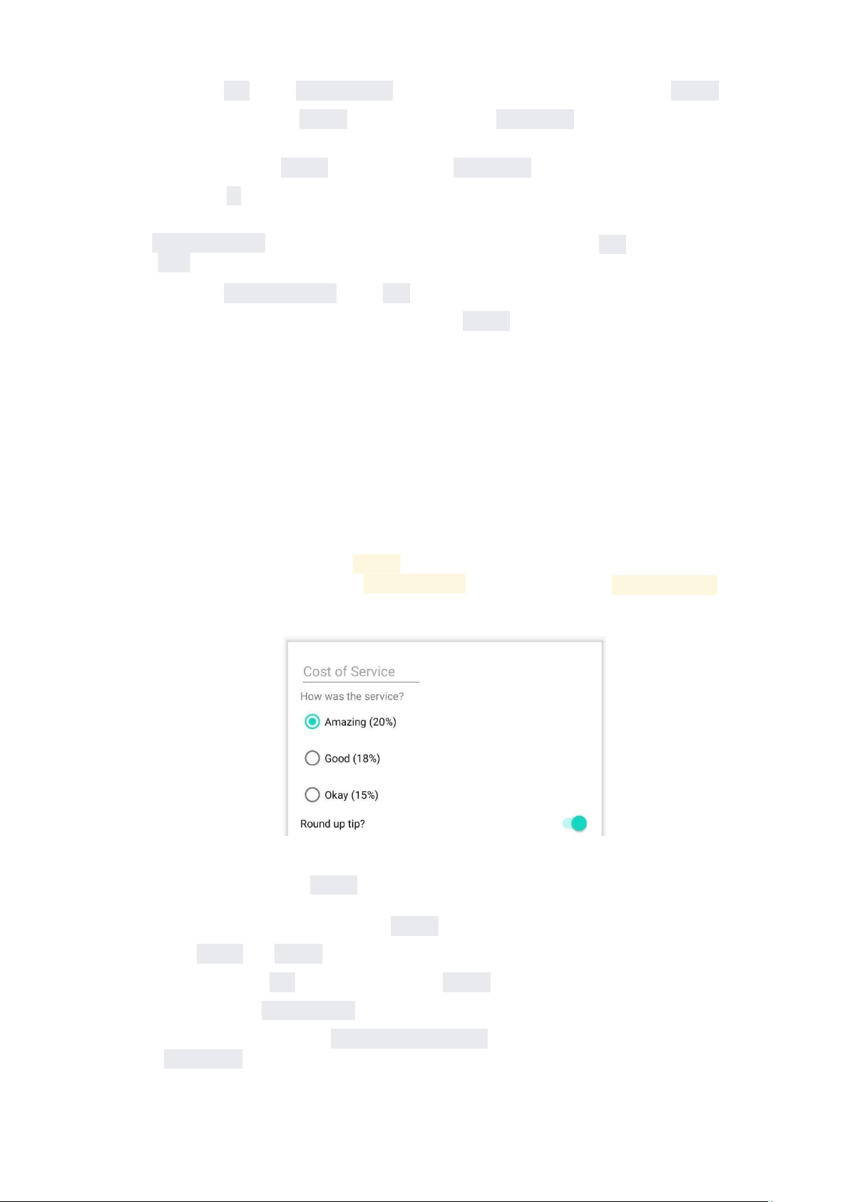 Switch, Button và TextView để hiển thị số tiền boa. lOMoAR cPSD| 58097008