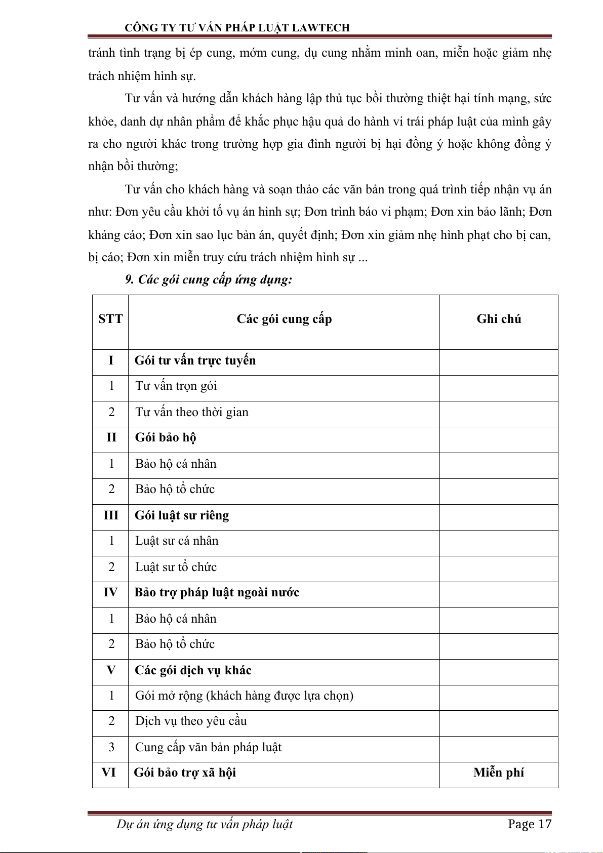 9. Các gói cung cấp ứng dụng: STT Các gói cung cấp Ghi chú I