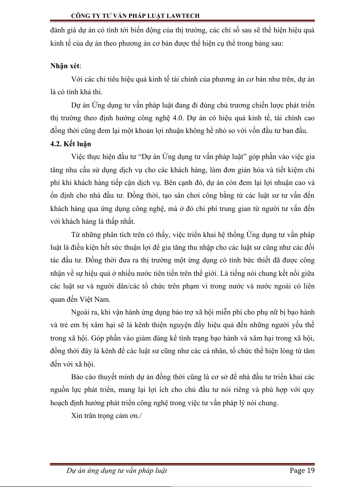 hoạch định hướng phát triển công nghệ trong việc tư vấn pháp lý nói chung. Xin trân trọng cảm ơn./