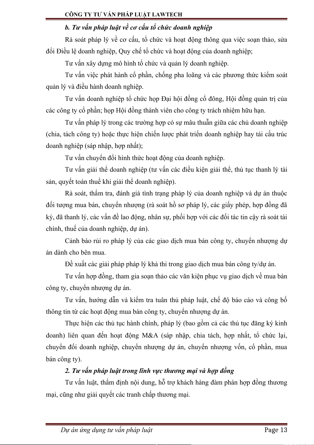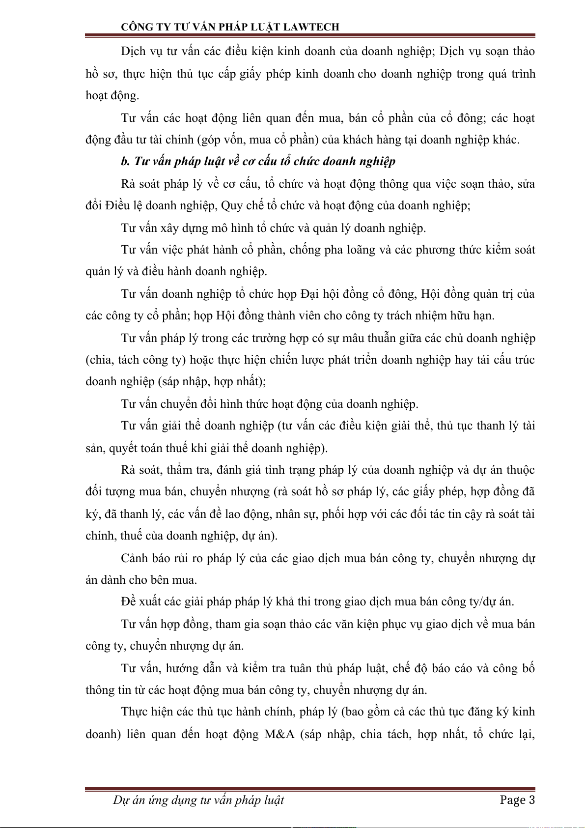 b. Tư vấn pháp luật về cơ cấu tổ chức doanh nghiệp