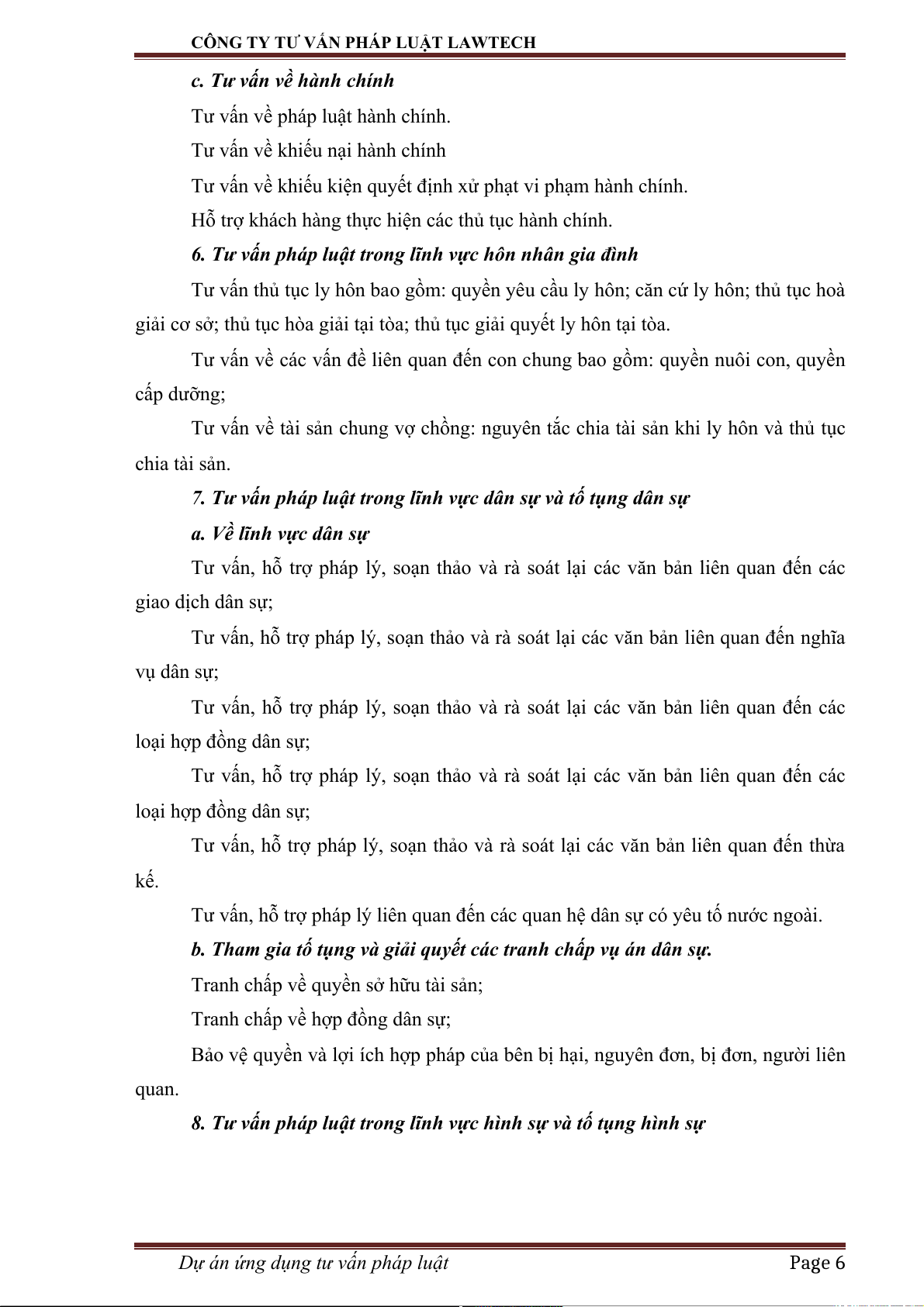 I. Lĩnh vực tư vấn pháp lý của ứng dụng: