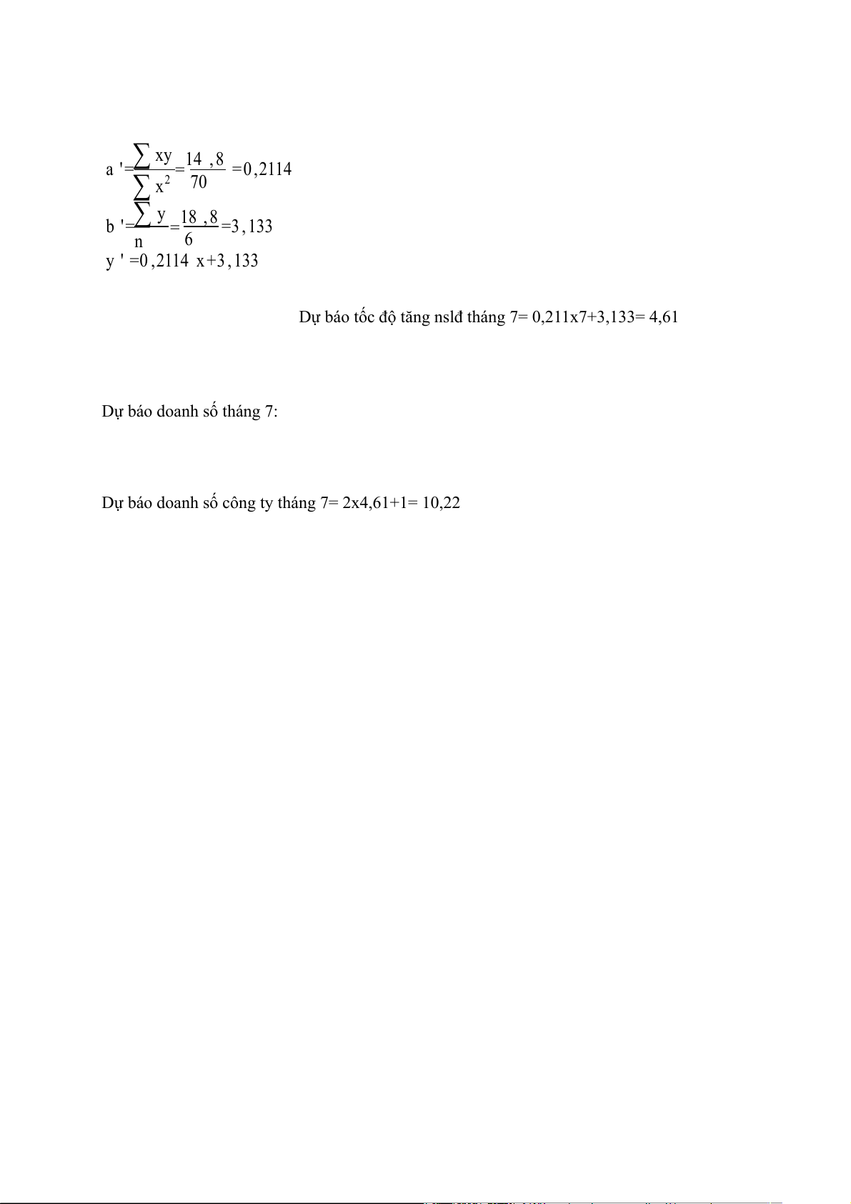 Dự báo tốc độ tăng nslđ tháng 7= 0,211x7+3,133= 4,61 Dự báo doanh số tháng 7: