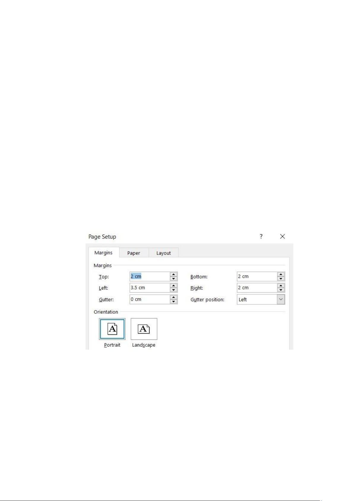 Lề trên: 2 cm, dưới: 2 cm, trái: 3,5 cm, phải: 2 cm. -