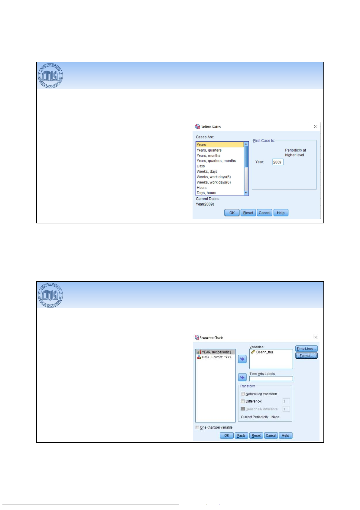 Xác định dữ liệu là chuỗi thời gian Data > Define Dates