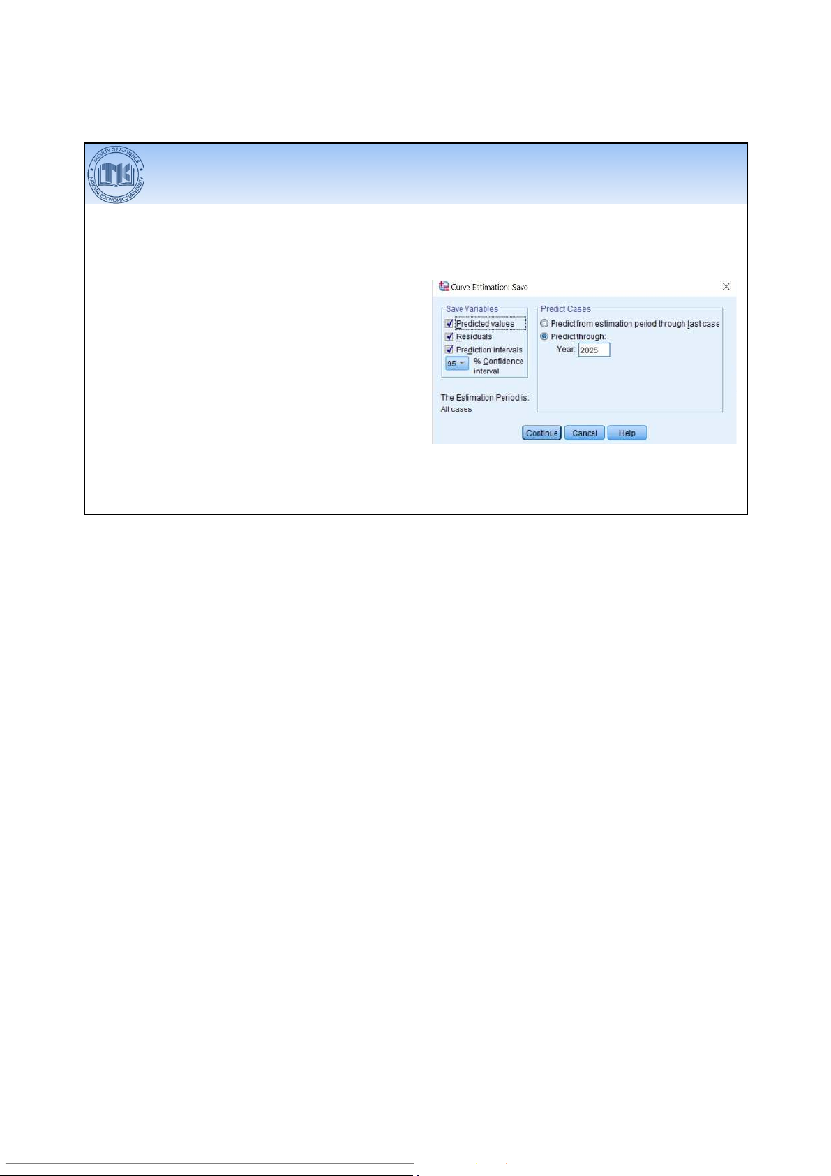 Analyze > Forecasting > Create Models… Tại khung Options