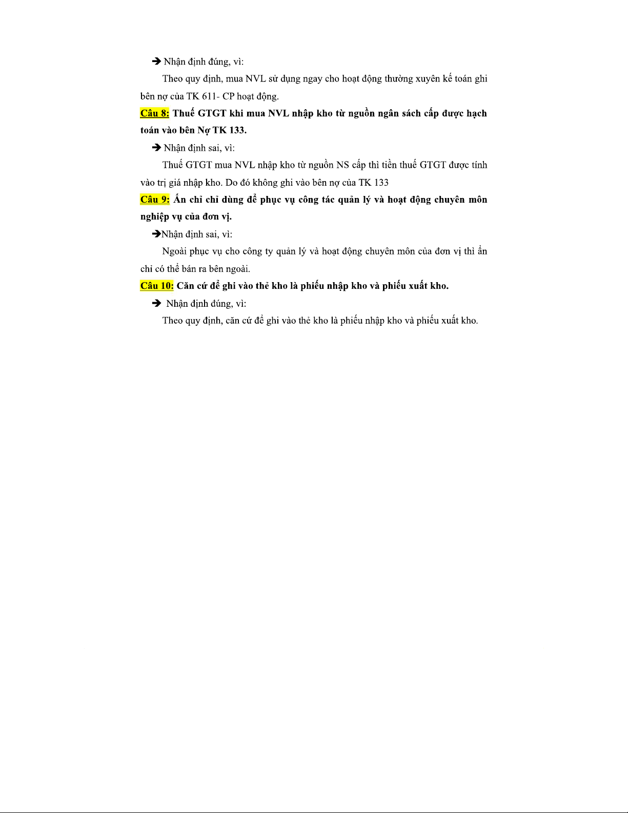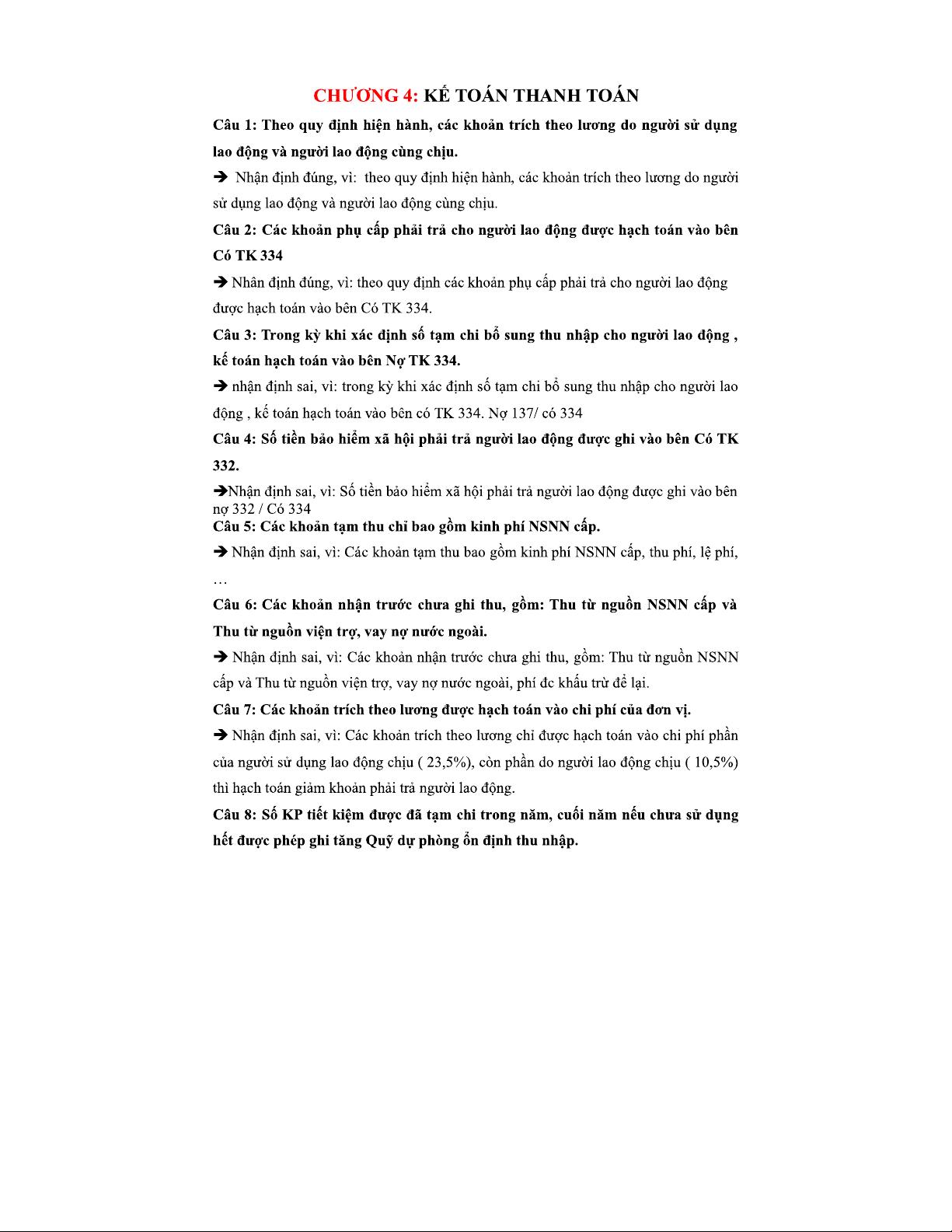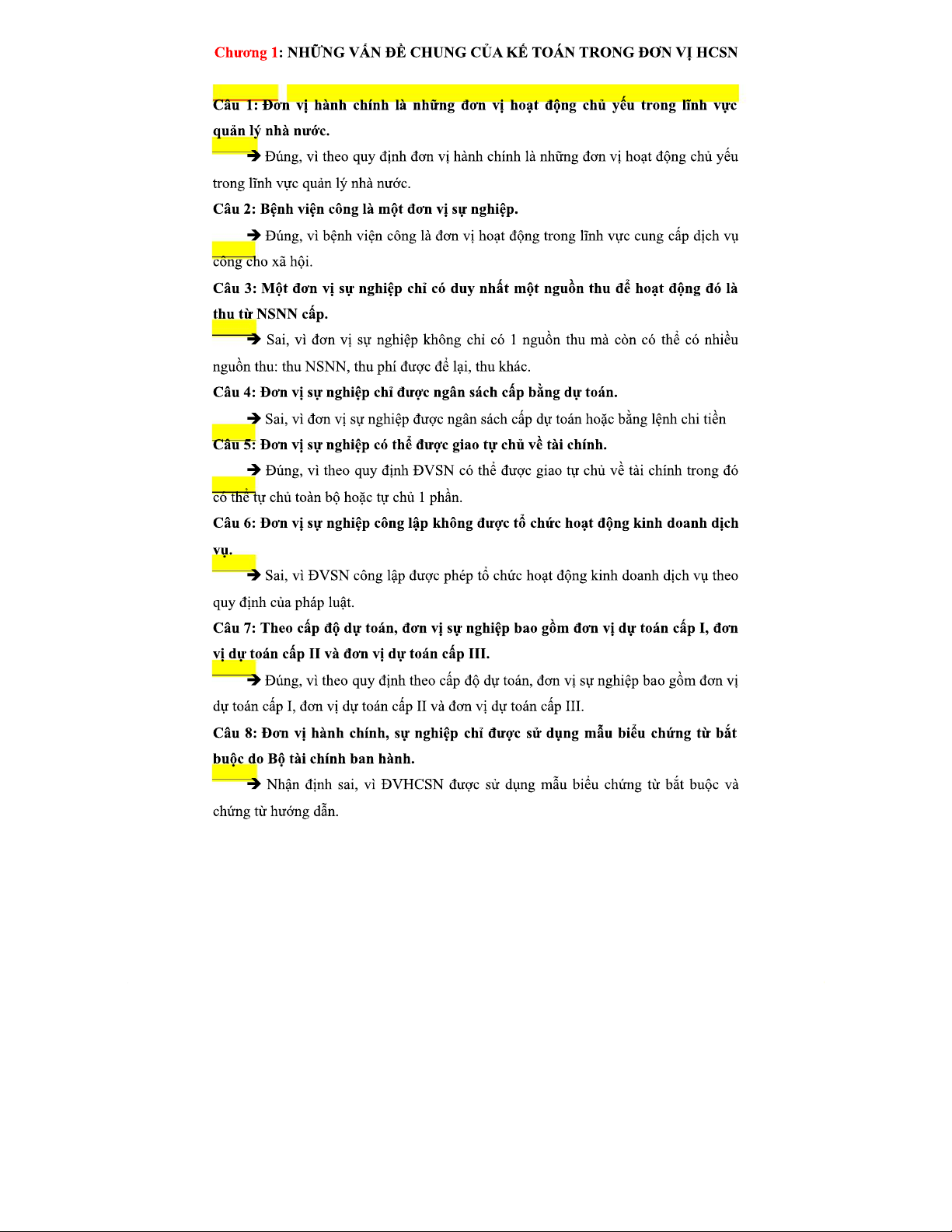 Đúng sai HCSN - Kế toán hành chính sự nghiệp (Chương 1-4)