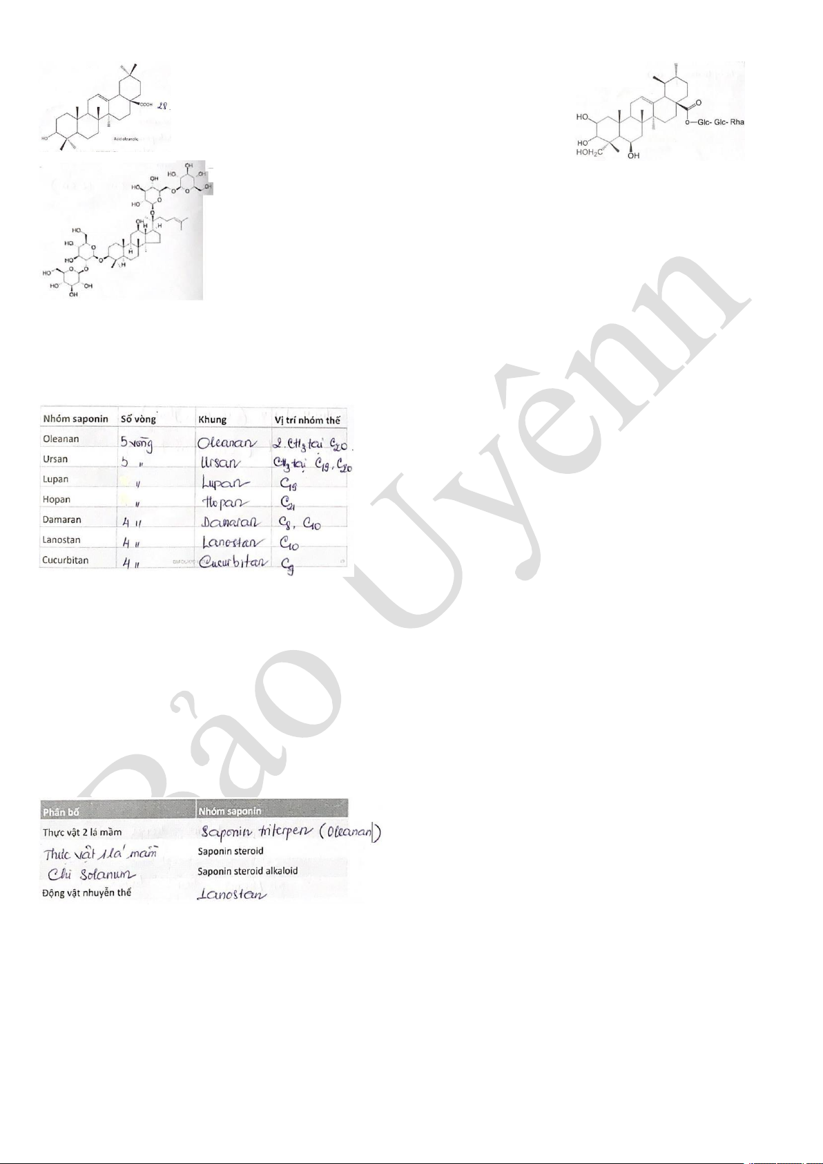 + Đường bidesmosid: 1 mạch gắn ở C3 còn lại C26 (Saponin steroid) hay 1 este ở C28 (Saponin triterpenoid)