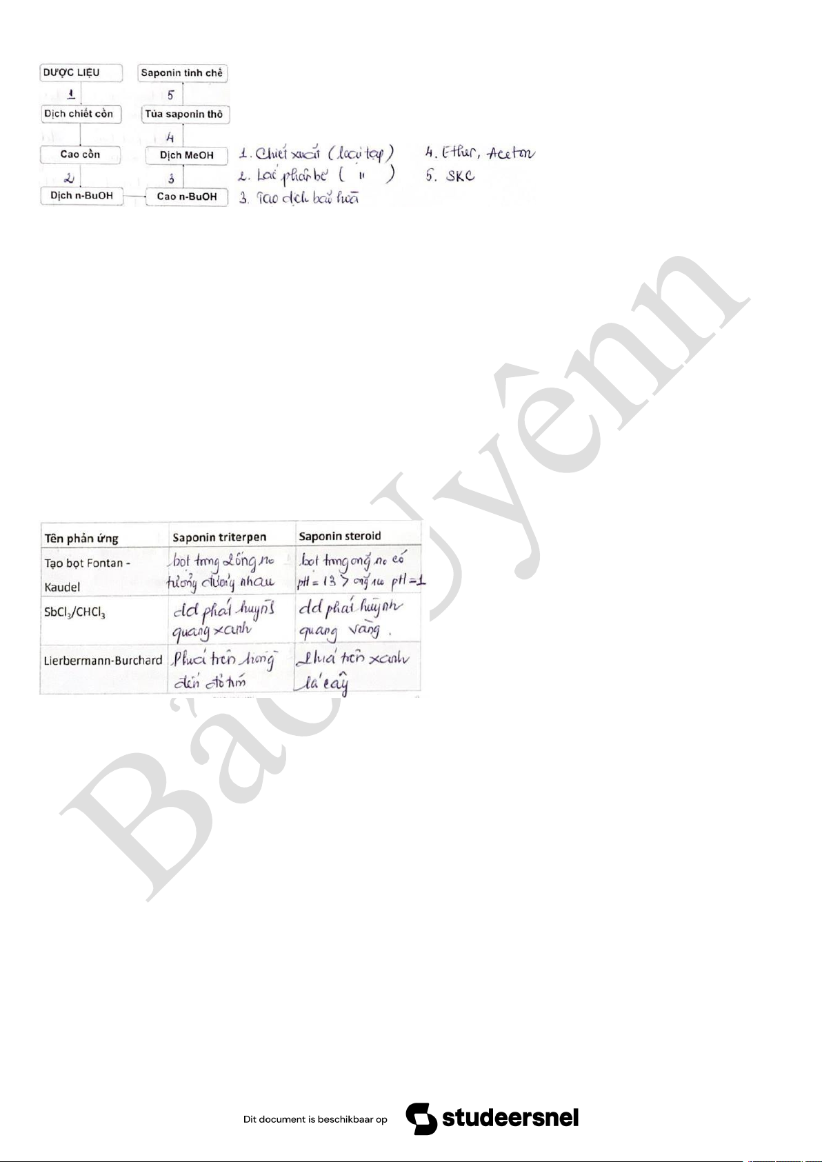 Phản ứng Lierbermann-Burchard: Saponin/CHCl3 + anhydrid acetic + H2SO4dd