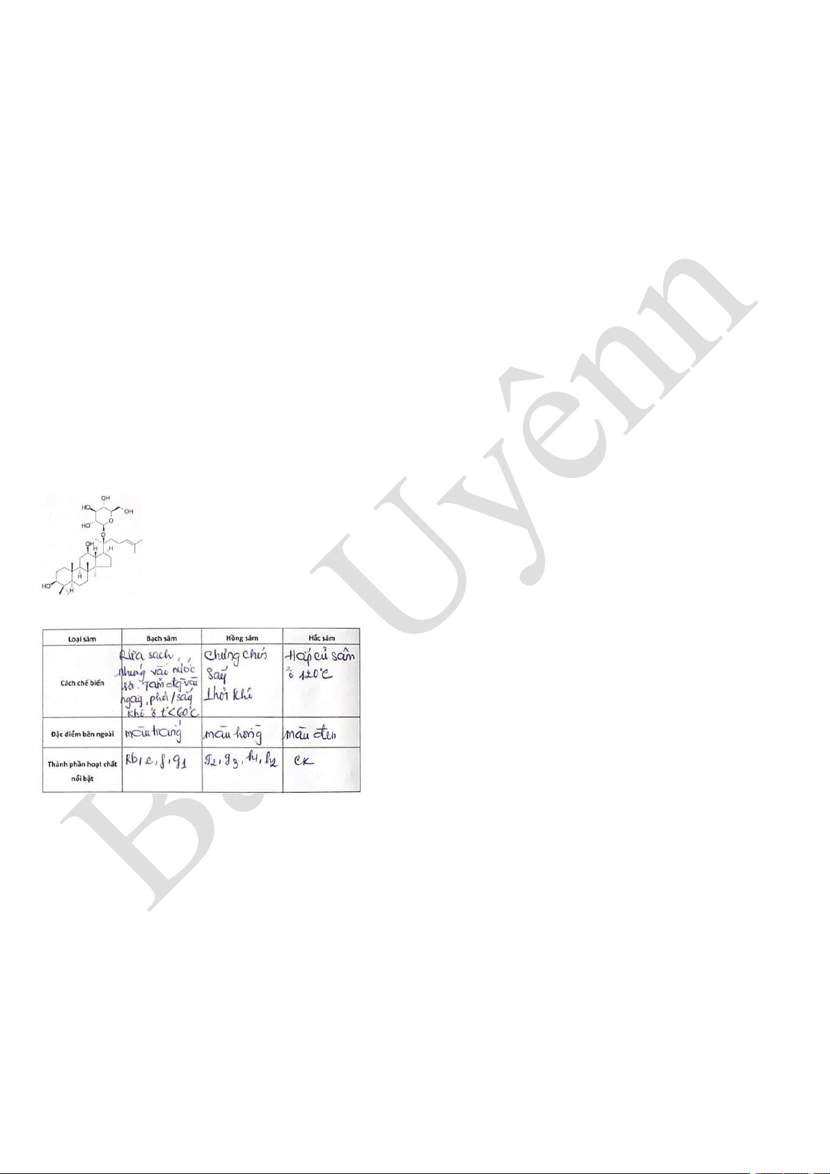 Thành phần saponin chủ yếu trong nhân sâm Saponin triterpen 4 vòng