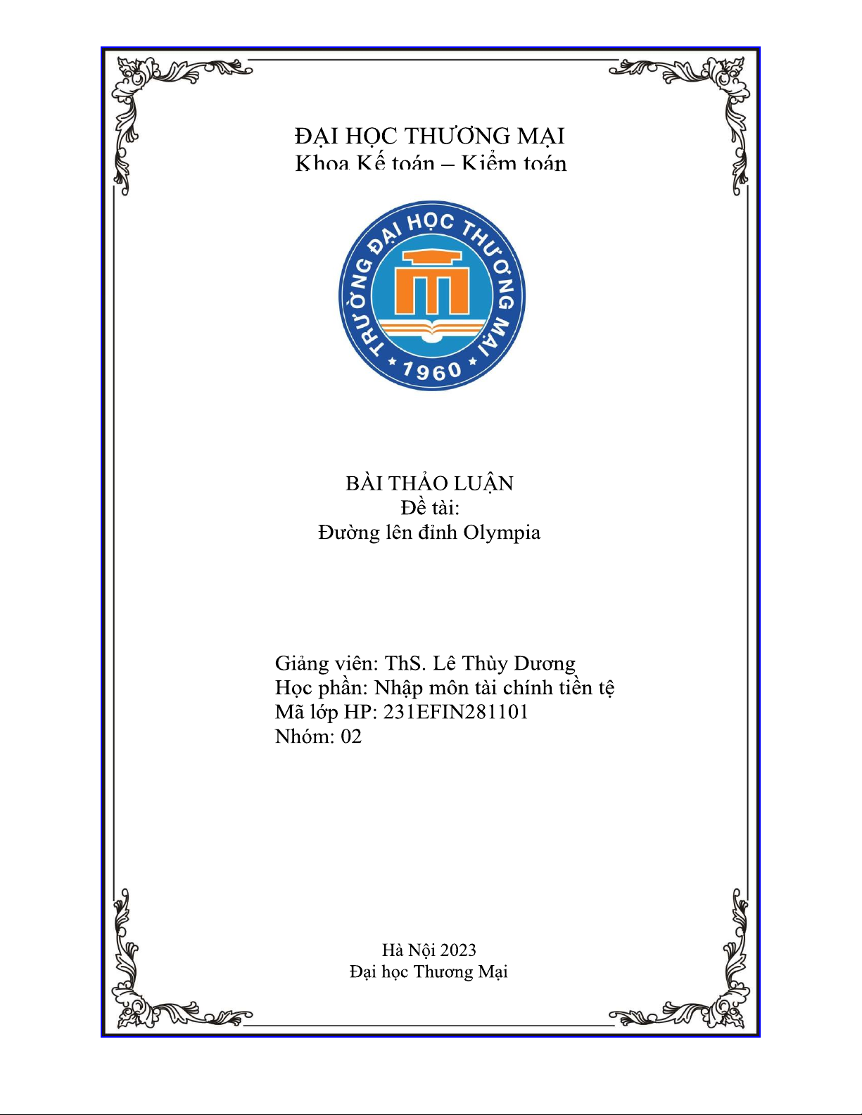 Bài thảo luận học phần Nhập môn tài chính tiền tệ của nhóm 2 với đề tài: