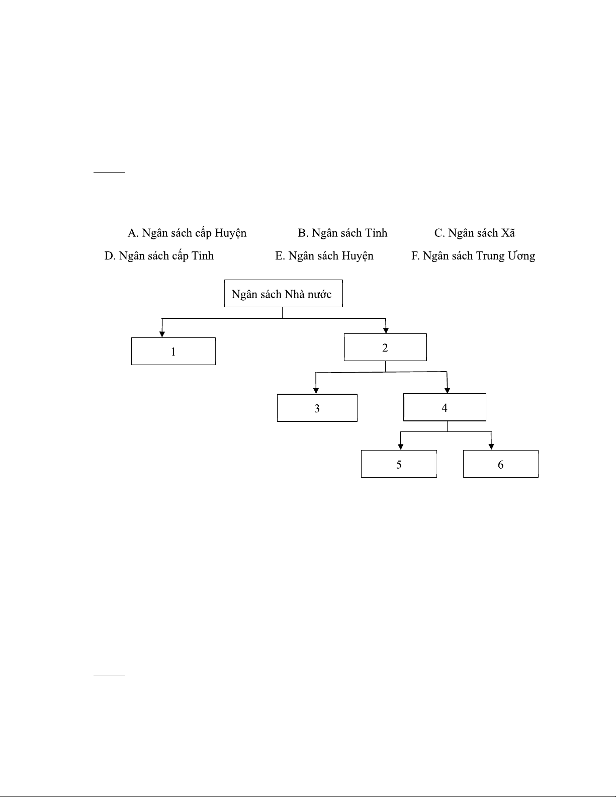 Câu 2: Sắp xếp các đáp án sau vào vị trí tương ứng trên sơ đồ Hệ thống ngân sách nhà nước Việt Nam. Đáp án: F-B-D-E-A-C