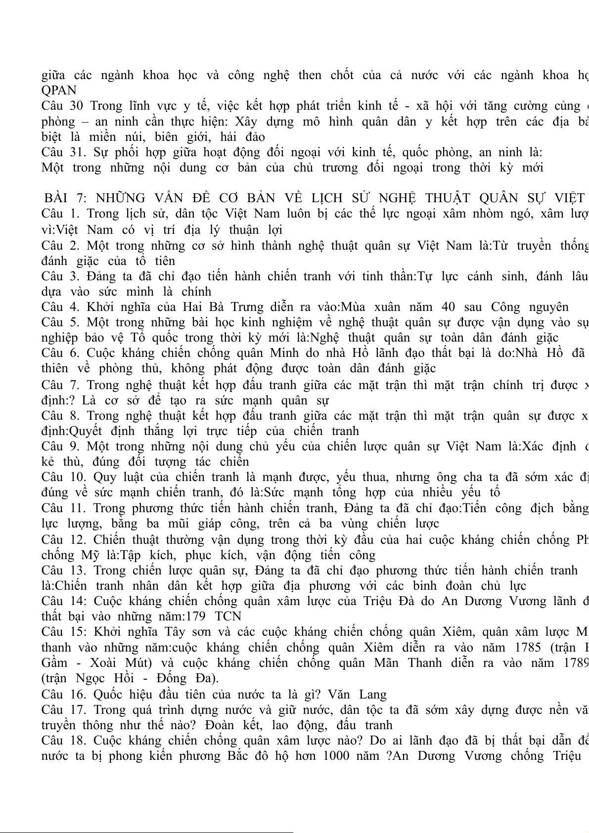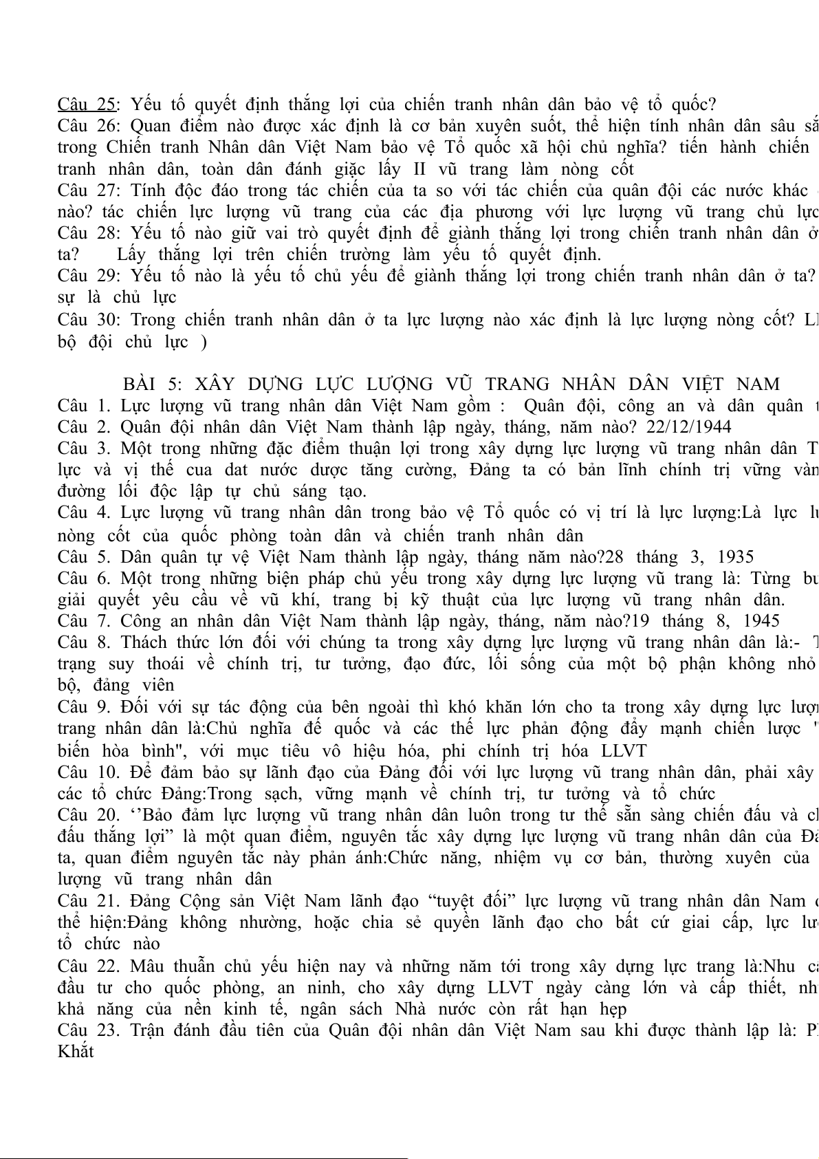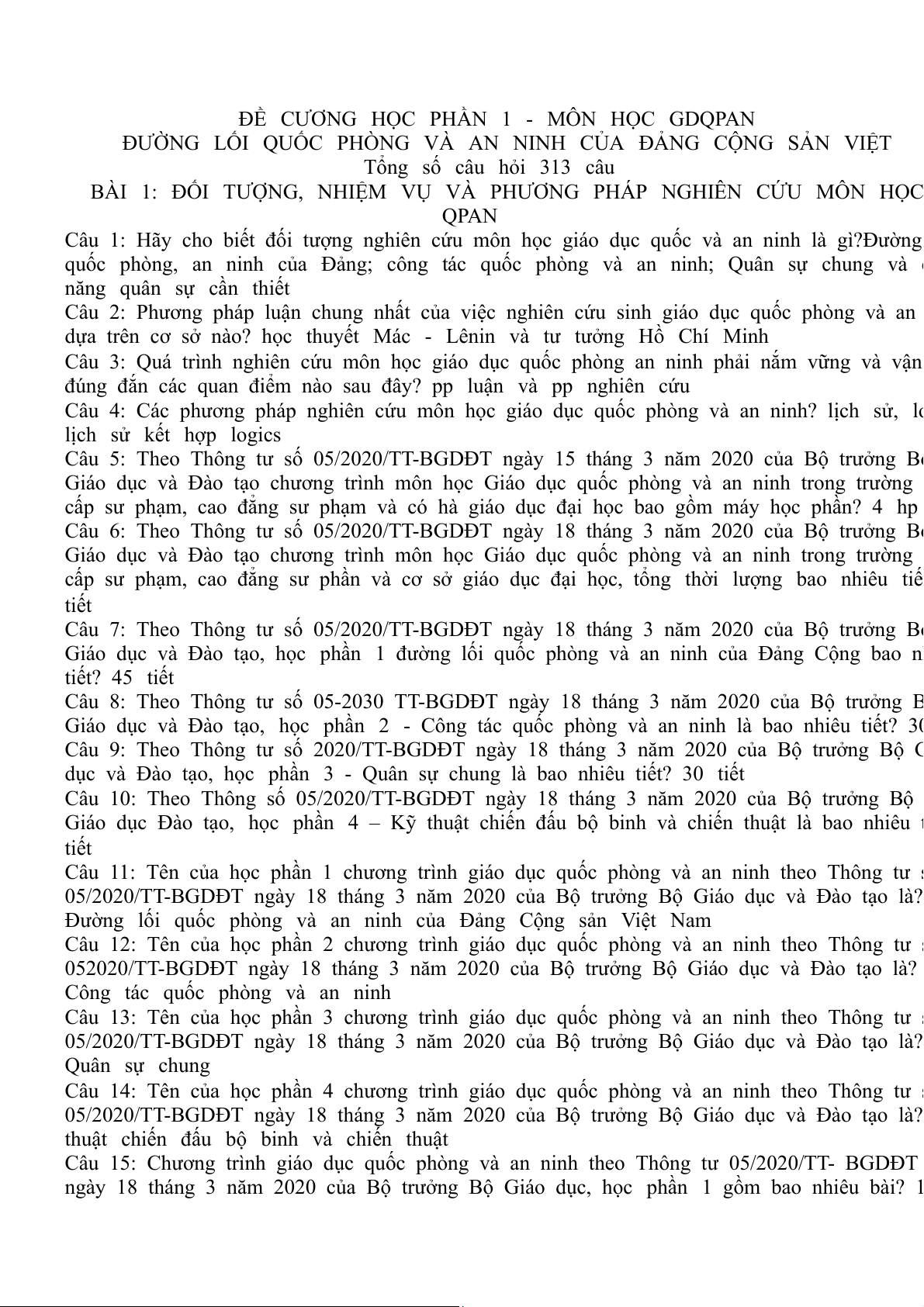 ĐỀ CƯƠNG HỌC PHẦN 1 - MÔN HỌC GDQPAN